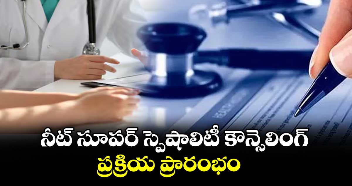 హైదరాబాద్, వెలుగు: నీట్ సూపర్ స్పెషాలిటీ(ఎస్ఎస్)–2025 కౌన్సెలింగ్ ప్రక్రియ ప్రారంభమైంది. తొలి విడత కౌన్సెలింగ్ మార్చి 10 నుంచి 15న మధ్యాహ్నం 12 గంటల వరకు ఆన్ లైన్ లో రిజిస్ట్రేషన్లకు, మధ్యాహ్నం 3 గంటల వరకు ఫీజు చెల్లింపునకు అవకాశం కల్పించారు. అభ్యర్థులు మార్చి 11 నుంచి 16 వరకు వెబ్ ఆప్షన్లు నమోదు చేసుకోవచ్చు. మార్చి 17న సీట్ల కేటాయింపు ప్రక్రియ నిర్వహించి, 18న ఫస్ట్ రౌండ్ రిజల్ట్స్ ప్రకటిస్తారు. సీట్లు పొందినవారు మార్చి 19 నుంచి 25లోపు సంబంధిత కాలేజీల్లో రిపోర్ట్ చేయాల్సి ఉంటుంది.