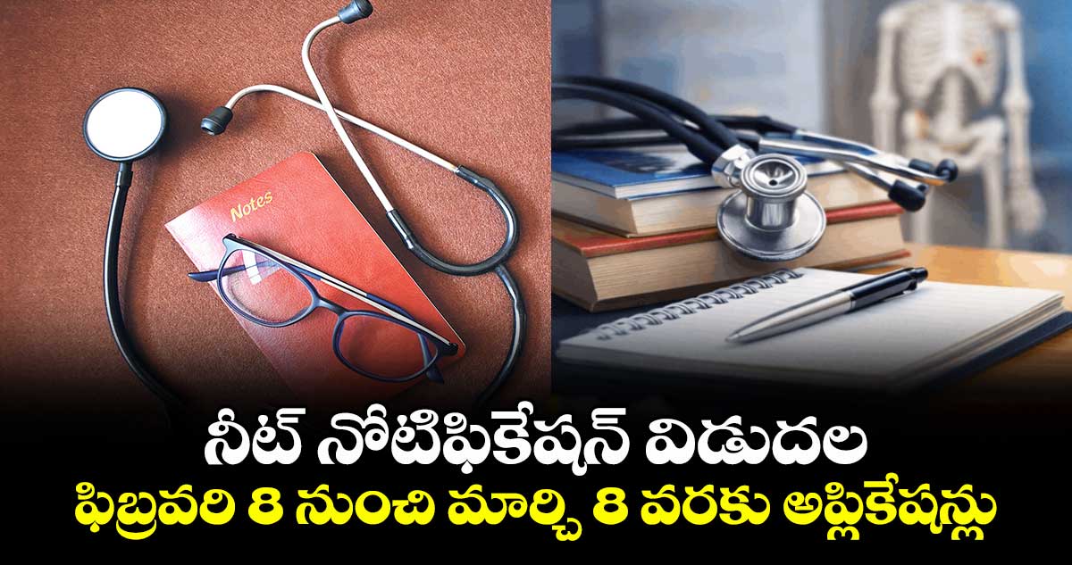 ఫిబ్రవరి 8 నుంచే దరఖాస్తుల స్వీకరణ మొదలుకాగా.. మార్చి 8 రాత్రి 9 గంటల వరకు గడువు విధించారు. ఈ పరీక్ష ద్వారా ఎంబీబీఎస్, బీడీఎస్, ఆయుష్, వెటర్నరీ, మిలిటరీ నర్సింగ్ కోర్సుల్లో సీట్లు భర్తీ చేయనున్నారు. తెలుగు, ఇంగ్లిష్, హిందీ సహా మొత్తం 13 భాషల్లో ఈ పరీక్ష జరగనుంది. అప్లికేషన్ ఫీజులు జనరల్ అభ్యర్థులకు రూ.1700, ఈడబ్ల్యూఎస్/ఓబీసీలకు రూ. 1600, ఎస్సీ/ఎస్టీ/దివ్యాంగులకు రూ.1000గా నిర్ణయించారు. దరఖాస్తుల్లో ఏమైనా తప్పులు దొర్లితే మార్చి 10 నుంచి 12 వరకు సవరించుకునే అవకాశం కల్పించారు. అర్హత ఉన్న విద్యార్థులు వెంటనే https://neet.nta.nic.in/ వెబ్ సైట్ లో అప్లై చేసుకోవాలని అధికారులు సూచించారు.
