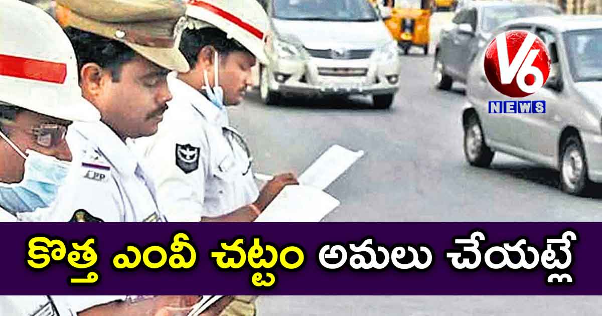 రాష్ట్రంలో ఆదివారం నుంచి కొత్త మోటారు వాహన చట్టం అమలుచేయలేదని రవాణా శాఖ ప్రిన్సి పల్ సెక్రటరీ సునీల్ శర్మ తెలిపారు. రాష్ట్ర ప్రభుత్వం నోటిఫికేషన్ ఇచ్చాకే పూర్తి స్థాయిలో అమలయ్యే అవకాశం ఉందన్నారు . నిబంధనలు అతిక్రమించిన వారి నుంచి వసూలు చేయాల్సిన ఫైన్ల గురించి చర్చిస్తున్నట్లు చెప్పారు . కొత్త చట్టం అమలుకాలేదని ప్రజలకు అవగాహన కల్పించాలని అధికారులకు సూచించామన్నారు. ఏపీ, కర్నాటక, కేరళ సహా మరికొన్న రాష్ట్రాల్లో నూ ఈ చట్టాన్ ని అమలుచేయడం లేదన్నారు .