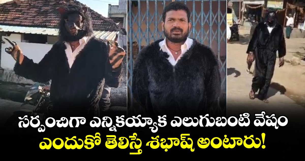 నిర్మల్ జిల్లాలో కొత్త సర్పించి వినూత్న వేషధారణతో అందరినీ ఆశ్చర్యానికి గురిచేశాడు. గెలిచిన మరుసటి రోజే ఎలుగు బంటి వేషం వేసి తిరుగుతూ కనిపించడంతో అందరూ ఆశ్చర్యానికి గురవుతున్నారు. ఇదేంటి.. సర్పించి ఈ వేషం వేయటమేంటని ఇప్పుడు రాష్ట్ర వ్యాప్తంగా చర్చించుకుంటున్నారు. దీని వెనుక పెద్ద స్టోరే ఉంది. అదేంటో తెలుసుకుందాం.