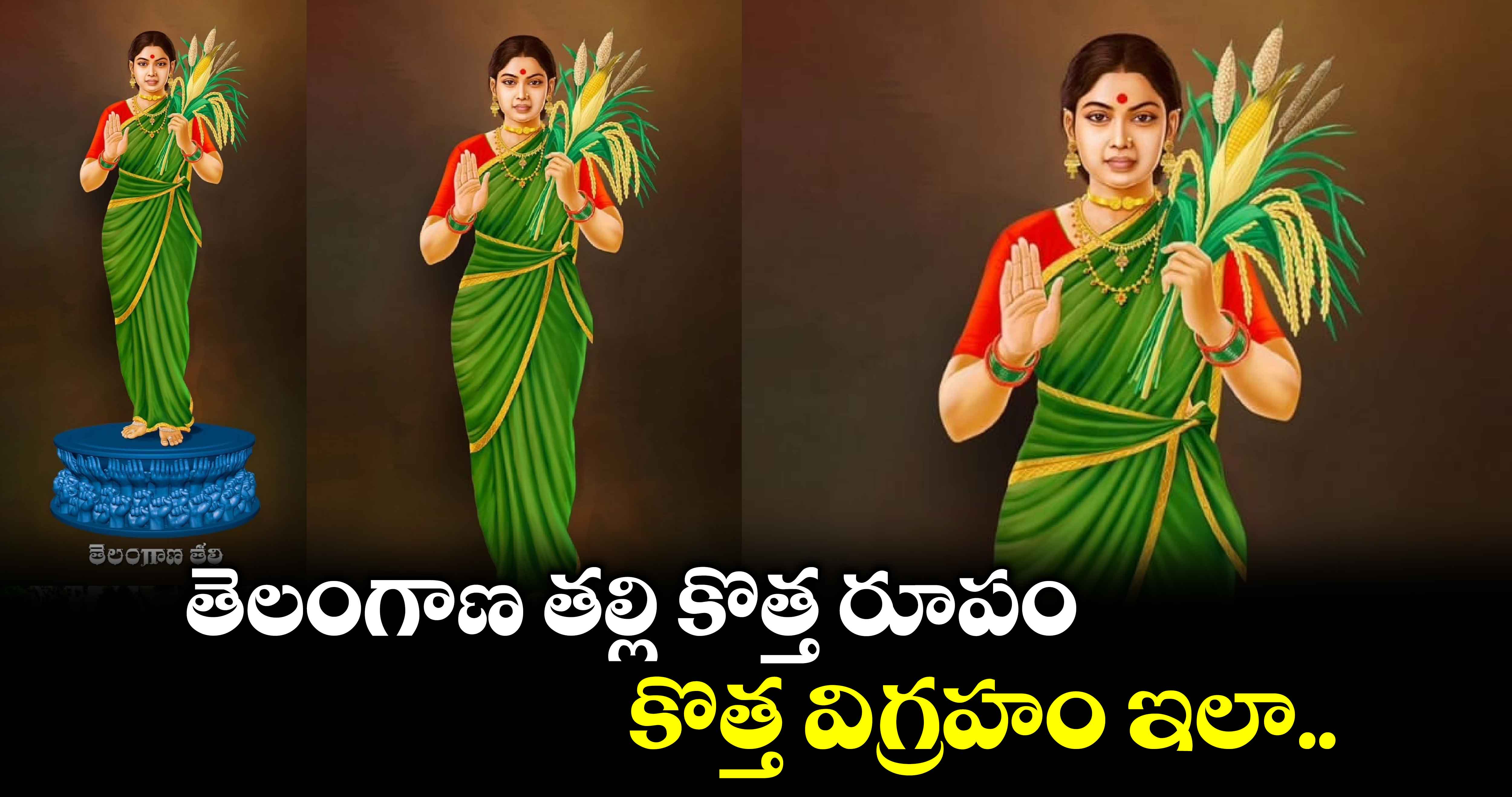 హైదరాబాద్: తెలంగాణ తల్లికి కొత్త రూపం.. కొత్త విగ్రహం వచ్చేసింది. తెలంగాణ ఆడబిడ్డను గుర్తు చేస్తోంది తెలంగాణ తల్లి విగ్రహం. తెలంగాణ సామాన్య మహిళ రూపం ఆకట్టుకుంటుంది. ఆకు పచ్చ చీరలో దర్శనం ఇస్తుంది తెలంగాణ తల్లి. చేతికి మట్టి గాజులతో తెలంగాణ సంస్కృతి, సంప్రదాయాలకు నిండుదనం తీసుకొచ్చింది తెలంగాణ తల్లి విగ్రహం.