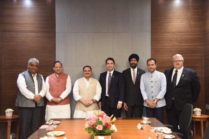 భారత్ లో పర్యటిస్తున్న న్యూజీలాండ్ ప్రతిపక్ష నాయకుడు సైమన్ బ్రిడ్జెస్ బీజేపీ కార్యాలయాన్ని సందర్శించారు. కివీస్ బృందానికి స్వాగతం పలికారు వర్కింగ్ ప్రెసిడెంట్ జేపీ నడ్డా. తర్వాత వారితో పలు అంశాలపై చర్చించారు. భారతదేశంలో ఎన్నికల నిర్వహణ, పాలనా వ్యవహారాలపై నడ్డాతో న్యూజీలాండ్ నేతలు చర్చించారు. ఇరు దేశాల మధ్య సంబంధాలపైనా మాట్లాడుకున్నారు.