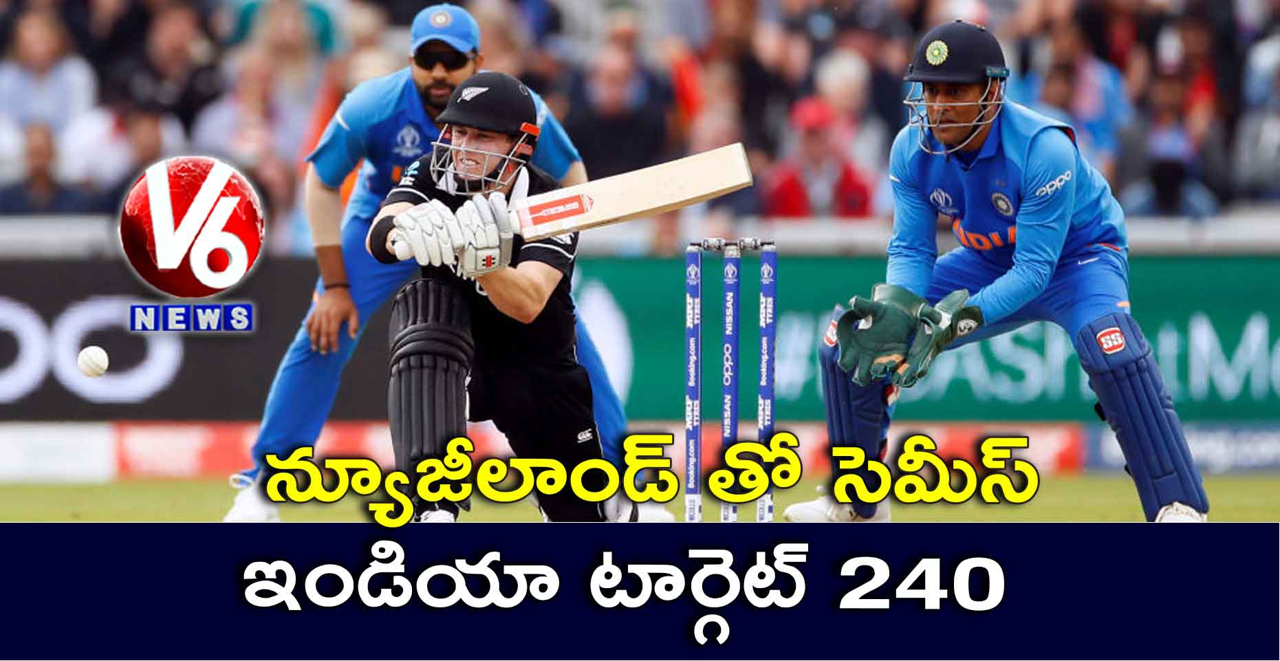 మాంచెస్టర్ : ఓల్డ్ ట్రాఫర్డ్ స్టేడియంలో టీమ్ ఇండియా – న్యూజీలాండ్ మధ్య తొలి సెమీఫైనల్ ఇవాళ ఉదయం కొనసాగింది. రెండోరోజుల పాటు జరుగుతున్న ఈ వన్డే మ్యాచ్ లో న్యూజీలాండ్ 50 ఓవర్లలో 8 వికెట్ల నష్టానికి 239 పరుగులు చేసింది. ఇండియాకు 240 రన్స్ టార్గెట్ ను విసిరింది.