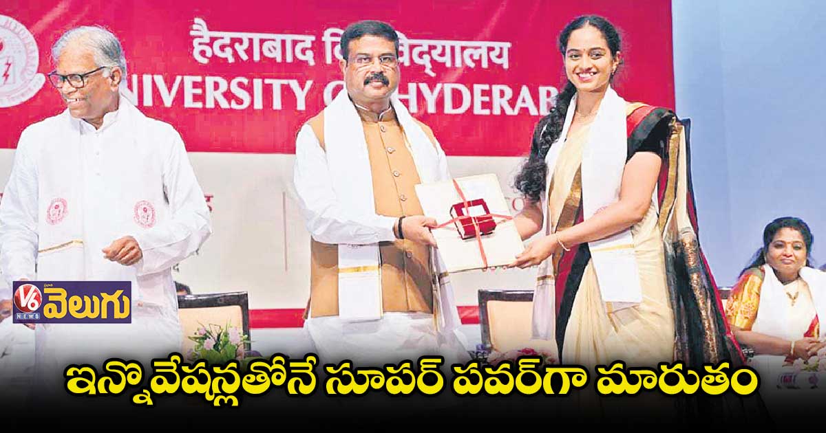 హైదరాబాద్/గచ్చిబౌలి, వెలుగు: మన దేశం సూపర్ పవర్ , నాలెడ్జ్ బేస్డ్ ఎకానమీగా మారడానికి ఇన్నొవేషన్లు, ఎంట్రప్రెన్యూర్ షిప్లు కీలకమని కేంద్ర విద్యా శాఖ మంత్రి ధర్మేంద్ర ప్రధాన్ అన్నారు. శనివారం హైదరాబాద్ సెంట్రల్ యూనివర్సిటీలో 22వ స్నాతకోత్సవం జరిగింది. గచ్చిబౌలిలోని బ్రహ్మ కుమారీస్ గ్లోబల్ పీస్ ఆడిటోరియంలో నిర్వహించిన ఈ వేడుకలకు కేంద్ర మంత్రితో కలిసి గవర్నర్ తమిళిసై హాజరయ్యారు. కరోనా కారణంగా మూడేండ్ల తర్వాత జరిగిన ఈ స్నాతకోత్సవంలో స్టూడెంట్లకు డిగ్రీ పట్టాలు, బంగారు పతకాలను అందజేశారు. ఈ సందర్భంగా ధర్మేంద్ర ప్రధాన్ మాట్లాడుతూ రాబోయే 25 ఏండ్లు దేశానికి ఎంతో కీలకమన్నారు. డిగ్రీలు పొందిన స్టూడెంట్లు తమ స్కిల్స్ను సొసైటీకి తిరిగి ఇచ్చేలా కృషి చేయాలని సూచించారు. నేడు ప్రపంచ దేశాలు భారత్ వైపు చూస్తున్నాయని, 100వ స్వాతంత్ర్య దినోత్సవాలు జరుపుకునే సమయానికి ప్రపంచానికి మన దేశం దిక్సూచిగా నిలుస్తుందని ఆశాభావం వ్యక్తం చేశారు. నేషనల్ ఎడ్యుకేషన్ పాలసీ విద్యార్థులను మాతృభాషలో నిపుణులుగా మారుస్తుందని, ఈ పాలసీ ద్వారా స్టూడెంట్లు గ్లోబల్ లీడర్లుగా ఎదుగుతారని తమిళిసై అన్నారు. హైదరాబాద్ సెంట్రల్వర్సిటీ దేశంలోని అత్యుత్తమ వర్సిటీల్లో ఒకటిగా గుర్తింపు పొందిందన్నారు.