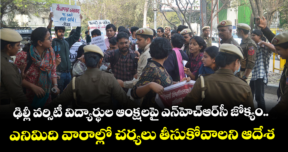 న్యూఢిల్లీ, వెలుగు: ఢిల్లీ యూనివర్సిటీ విద్యార్థుల ఆంక్షలపై వచ్చిన ఫిర్యాదును జాతీయ మానవ హక్కుల కమిషన్ (ఎన్హెచ్ఆర్సీ) స్వీకరించింది. విద్యార్థులు నలుగురికి మించి గ్రూపులుగా తిరగవద్దని, ముందస్తు అనుమతి లేకుండా సెమినార్లు, కాన్ఫరెన్లు నిర్వహించకూడదని తెలిపుతూ ఢిల్లీ వర్సిటీ ఇటీవల ఉత్తర్వులు జారీ చేసింది. ధర్నాలు, నిరసనలపై కూడా పూర్తి స్థాయిలో నిషేధం విధించింది.