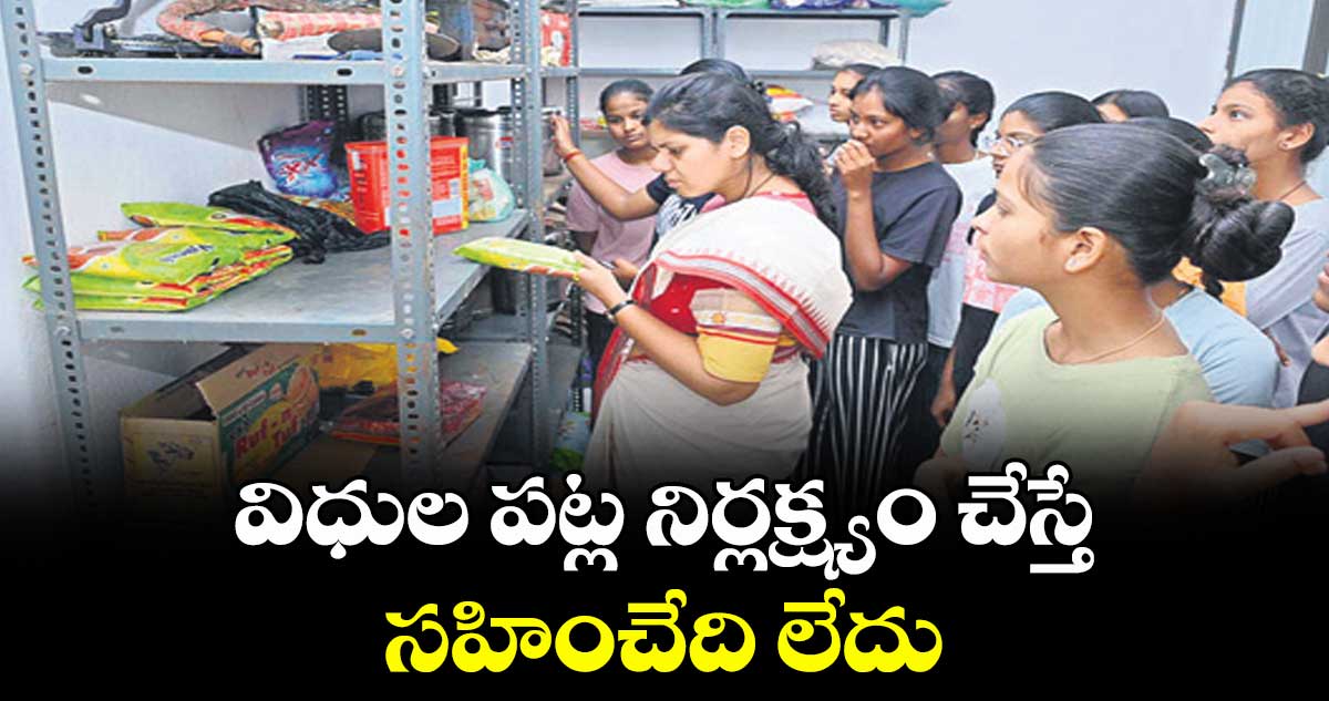 బాల్కొండ, వెలుగు: విధుల పట్ల నిర్లక్ష్యం చేస్తే సహించేది లేదని నిజామాబాద్జిల్లా కలెక్టర్ ఇలా త్రిపాఠి హెచ్చరించారు. సోమవారం బాల్కొండ మైనారిటీ రెసిడెన్షియల్ గల్స్ హాస్టల్, మోడల్ స్కూల్ ను ఆమె ఆకస్మికంగా తనిఖీ చేశారు. మోడల్ స్కూల్ కేర్ టేకర్ ఎం.వీణ విధుల పట్ల నిర్లక్ష్యం వహిస్తూ తమతో అనుచితంగా ప్రవర్తిస్తోందని స్టూడెంట్స్ కలెక్టర్ ఎదుట కంటతడి పెట్టారు. పరుష పదజాలంతో దూషిస్తూ, అనుచితంగా ప్రవర్తిస్తున్నారని స్టాఫ్ కన్నీటి పర్యంతమయ్యారు.