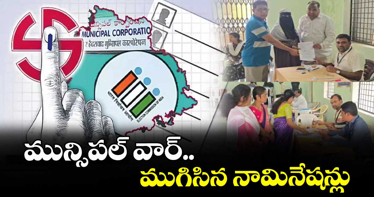 తెలంగాణలో మున్సిపల్ ఎన్నికల నామినేషన్ల గడువు ఈరోజు(జనవరి 30)ముగిసింది. సాయంత్రం 5గంటల వరకు క్యూ లైన్లలో ఉన్న అభ్యర్థులకు నామినేషన్లు వేయడానికి చాన్స్ ఇస్తారు. జనవరి 31న నామినేషన్లను పరిశీలిస్తారు. ఫిబ్రవరి 3 వరకు నామినేషన్ల ఉపసంహరణకు గడువు ఉంది.అదే రోజు ఫైనల్ అభ్యర్థులకు గుర్తులు కేటాయిస్తుంది ఈసీ. ఫిబ్రవరి 11న మున్సిపల్ ఎన్నికలకు పోలింగ్ జరగనుండగా.. 13న కౌంటింగ్ జరుగుతుంది.