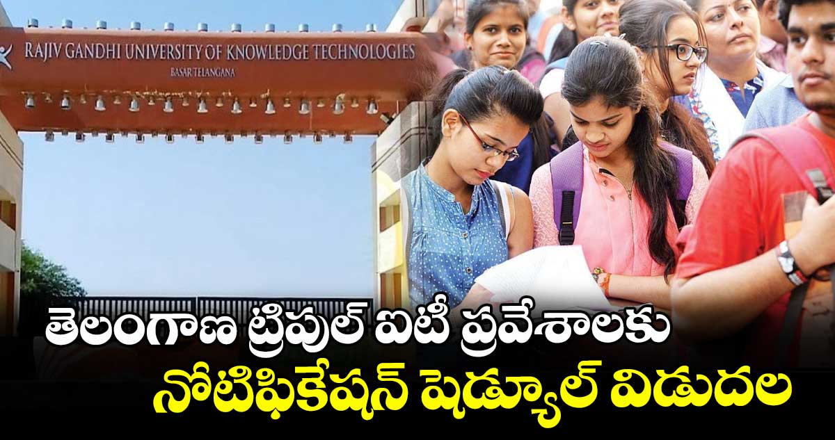 తెలంగాణలో ట్రిపుల్ ఐటీ ప్రవేశాలకు నోటిఫికేషన్ విడుదలైంది. 2026-27 విద్యా సంవత్సరానికి గాను ఆర్జీయూకేటీ బాసర వీసీ గోవర్దన్ శుక్రవారం (మార్చి 13) నోటిఫికేషన్కు సంబంధించిన షెడ్యూల్ను విడుదల చేశారు. 2026 మార్చి18 నుంచి అప్లికేషన్లు స్వీకరించనున్నట్లు తెలిపారు. అడ్మిషన్ల దరఖాస్తు కు చివరితేది 20.05.2026 గా పేర్కొన్నారు.