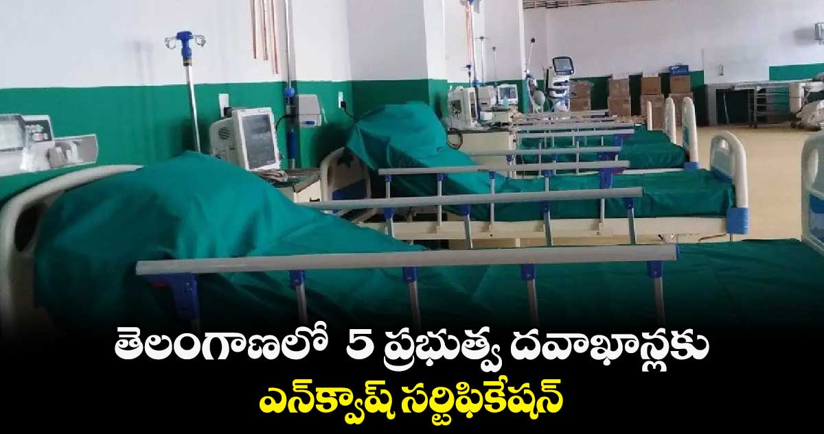 హైదరాబాద్, వెలుగు: రాష్ట్రంలోని 5 ప్రభుత్వ దవాఖాన్లకు నేషనల్ క్వాలిటీ అష్యూరెన్స్ స్టాండర్డ్స్ (ఎన్క్వాష్) సర్టిఫికేషన్ లభించింది. హుజూరాబాద్ ఏరియా దవాఖాన, ఉట్నూరు సీహెచ్సీ, జగిత్యాల పీహెచ్సీ, అడ్డగుంటపల్లి యూపీహెచ్సీ, ధంసులాపురం ఏఏఎం ఈ అవార్డుకు ఎంపికయ్యాయి. శుక్రవారం ఢిల్లీలో జరుగనున్న ప్రత్యేక కార్యక్రమంలో కేంద్ర వైద్యారోగ్య శాఖ మంత్రి చేతుల మీదుగా రాష్ట్ర అధికారులు ఈ అవార్డులు అందుకోనున్నారు.