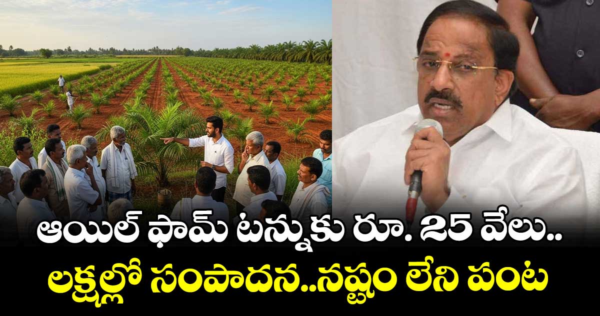 ఆయిల్ ఫామ్ టన్నుకు రూ. 25 వేల మద్దతు ధర కల్పిస్తామన్నారు మంత్రి తుమ్మ లనాగేశ్వర్ రావు. వరిపొలం కాకుండా ఆయిల్ ఫామ్ వేసుకుని చూస్తే లాభదాయకంగా ఉంటుంది. ఆయిల్ ఫామ్ వల్ల అధిక లాభాలు ఉన్నాయన్నాని.. అసలు నష్టం ఉండదని చెప్పారు.