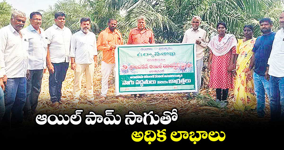 ఈ తోటలు సాగు చేస్తున్న రైతులకు డ్రిప్ ఏర్పాటుకు 90, మొక్కల కొనుగోలుకు 80 శాతం సబ్సిడీ ఇస్తున్నట్లు తెలిపారు. ప్రస్తుతం మార్కెట్ లో టన్నుకు రూ.21 వేల ధర ఉందని, రామ్ చరణ్ ఆయిల్ ఇండస్ట్రీ ఆధ్వర్యంలో కొనుగోలు చేస్తారని చెప్పారు. ఆయిల్ పామ్ ఫీల్డ్ ఆఫీసర్ ప్రవీణ్ కుమార్, డ్రిప్ ఇరిగేషన్ పరీక్షిత్ కంపనీ స్టేట్ కో–ఆర్డినేటర్ దేవేందర్ రెడ్డి, డ్రిప్ఇరిగేషన్ డీలర్ రవీందర్ రెడ్డి, రైతులు పాల్గొన్నారు.