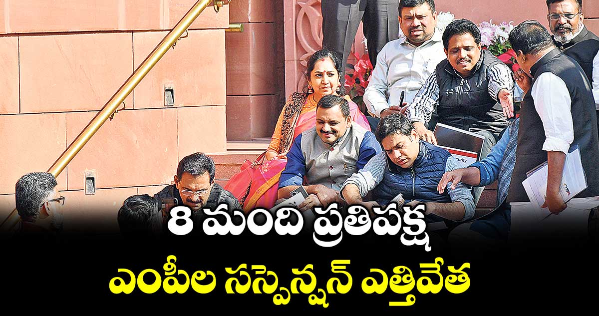 ఈ సందర్భంగా కాంగ్రెస్ పార్టీకి చెందిన గుర్జీత్ సింగ్ ఔజ్లా, హిబీ ఈడెన్, డీన్ కురియాకోస్, అమరీందర్ సింగ్ రాజా వారింగ్, బి.మాణిక్కం తాగోర్, డాక్టర్ ప్రశాంత్ పడోలే, చామల కిరణ్ కుమార్ రెడ్డి, సీపీఐ(ఎం) పార్టీకి చెందిన ఎస్.వెంకటేశన్ కాగితాలు చింపి స్పీకర్ వైపు విసిరారు. దీంతో ఈ 8 మందిని బడ్జెట్ సమావేశాలు పూర్తయ్యేవరకు సస్పెండ్ చేశారు.