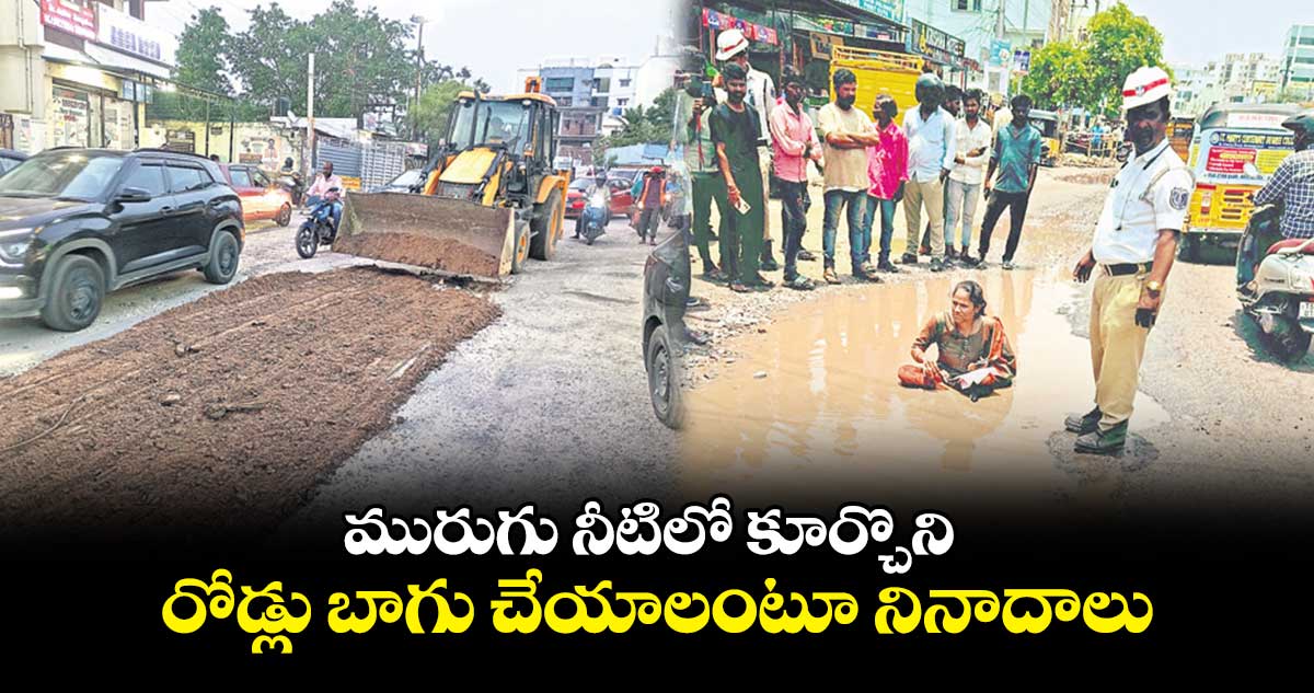 ఎల్బీనగర్, వెలుగు: ఎల్బీనగర్నుంచి నాగోలు వరకు రోడ్డు అధ్వానంగా మారిందని గురువారం ఓ ప్రైవేట్ఎంప్లాయ్బండ్లగూడ ఆనంద్ నగర్ చౌరస్తాలో ఆందోళనకు దిగింది. రోడ్డుపై ఏర్పడిన భారీ గుంతలో నిలిచిన వర్షపు నీటిలో కూర్చొని నిరసన తెలిపింది. అధికారులు స్పందించి వెంటనే రోడ్డును బాగుచేయాంటూ నినాదాలు చేసింది. వివరాలు ఇలా ఉన్నాయి. పెద్దఅంబర్ పేట మున్సిపాలిటీ కుంట్లూరులోని న్యూ జీవీఆర్ కాలనీకి చెందిన నిహారిక ప్రైవేట్ ఉద్యోగి. ఆమెకు ఇద్దరు పిల్లలు ఉన్నారు. బండ్లగూడలోని ఓ స్కూల్లో చదువుకుంటున్న వారిద్దరినీ నిహారిక రోజూ స్కూటీపై తీసుకెళ్లి దింపొస్తుంది. అయితే ఎల్బీనగర్ – నాగోలు – బండ్లగూడ రోడ్లు పూర్తిగా పాడయ్యాయి. ఎక్కడికక్కడ భారీ గుంతలు ఏర్పడ్డాయి.