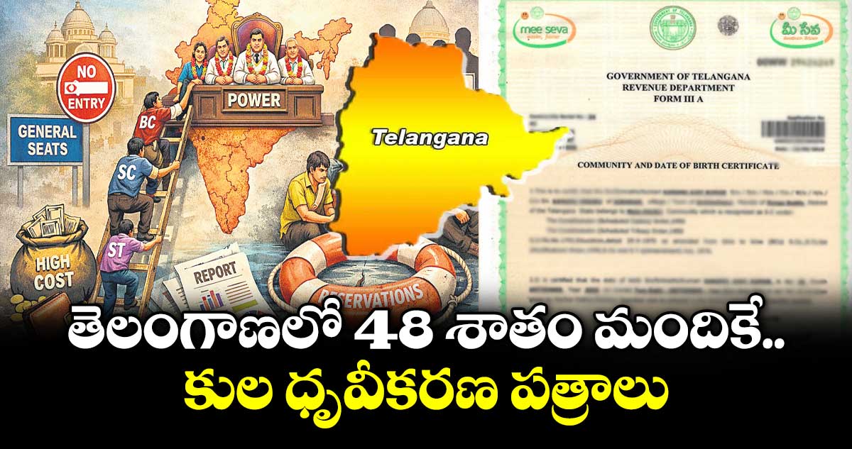 8 శాతం మందికే కుల ధ్రువీకరణ పత్రాలు.. రాష్ట్ర జనాభాలో సగానికి పైగా ఉన్న బీసీ వర్గాలకు రాజకీయంగా నిర్ణాయక పదవుల్లో సరైన వాటా దక్కడం లేదని, ఇందులో వీరి వాటా కేవలం 3 శాతం మాత్రమే ఉన్నట్లు తేలింది. ముఖ్యంగా పట్టణ ప్రాంతాల్లో అగ్రవర్ణాల(ఓసీ) ఆధిపత్యం ఉండగా, అట్టడుగు వర్గాల ప్రాతినిధ్యం నామమాత్రంగా మిగిలింది. ప్రభుత్వ విధానాలను రూపొందించే ఉన్నత స్థాయి రాజకీయ పదవుల్లో కొన్ని సామాజిక వర్గాల వారే దశాబ్దాలుగా పాతుకుపోయినట్లు గణాంకాలు చెప్తున్నాయి.
