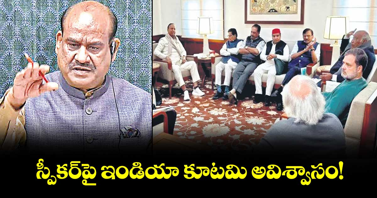 న్యూఢిల్లీ: రాష్ట్రపతి ప్రసంగానికి ధన్యవాదాలు తెలిపే తీర్మానంపై చర్చ సందర్భంగా రాహుల్ గాంధీతో పాటు ఇతర విపక్ష నేతలను మాట్లాడనీయకపోవడం, అలాగే 8 మంది ఎంపీల సస్పెన్షన్కు నిరసనగా లోక్సభ స్పీకర్ ఓం బిర్లాపై అవిశ్వాస తీర్మానం ప్రవేశ పెట్టాలని ఇండియా కూటమి భావిస్తోంది. ఇప్పటికే దీనికి సంబంధించి డ్రాఫ్ట్ సిద్ధం చేసినట్లు, విపక్ష ఎంపీలు 103 మంది సంతకాలు చేశారని సమాచారం. సోమవారం లోక్ సభ గందరగోళం మధ్య వాయిదా పడగా.. మధ్యాహ్నం లోక్ సభ ప్రతిపక్ష నేత, కాంగ్రెస్ ఎంపీ రాహుల్ గాంధీతో కలిసి ఇండియా కూటమి ఎంపీలు స్పీకర్ ఓం బిర్లాతో సమావేశమయ్యారు. స్పీకర్ ఛాంబర్ లో కొద్ది నిమిషాల పాటు జరిగిన ఈ సమావేశంలో.. సభలో మాట్లాడేందుకు తమకు మైక్ ఎందుకు ఇవ్వడంలేదని రాహుల్ గాంధీ అడిగారు. "ప్రధానికి ముప్పు ఉందని ప్రచారం చేస్తున్నారు, అదే నిజమైతే ఎఫ్ఐఆర్ నమోదు చేసి అరెస్టు చేయండి" అని ఆయన సవాల్ విసిరారు. గత వారం భారత్ చైనా సరిహద్దు అంశంపై రాహుల్ మాట్లాడడంపై సభలో గొడవ రేగిన విషయం తెలిసిందే. ఆ విషయంపై మాట్లాడకుండా రాహుల్ ను అడ్డుకోవడం, మైక్ కట్ చేయడంతో అప్పటి నుంచి సభ సాగడంలేదు. ప్రతిపక్షాలకు మాట్లాడే అవకాశం కల్పిస్తే చర్చల్లో పాల్గొనేందుకు తాము సిద్ధమని స్పష్టం చేశారు. దీనిపై స్పీకర్ ఓం బిర్లా స్పందిస్తూ.. ప్రభుత్వంతో సంప్రదించాక ఈ విషయంపై క్లారిటీ ఇస్తానని జవాబిచ్చారు. అనంతరం ఇండియా కూటమి ఎంపీలు రాజ్యసభ ప్రతిపక్ష నేత, కాంగ్రెస్ చీఫ్ మల్లికార్జున ఖర్గే ఛాంబర్ లో భేటీ అయ్యారు. స్పీకర్ పై అవిశ్వాస తీర్మానంపై చర్చించారు. అయితే, స్పీకర్ స్పందనను బట్టి మంగళవారం ఉదయం మరోమారు ఖర్గే ఛాంబర్ లోనే భేటీ అయి తుదినిర్ణయం తీసుకోవాలని నిశ్చయించారు.