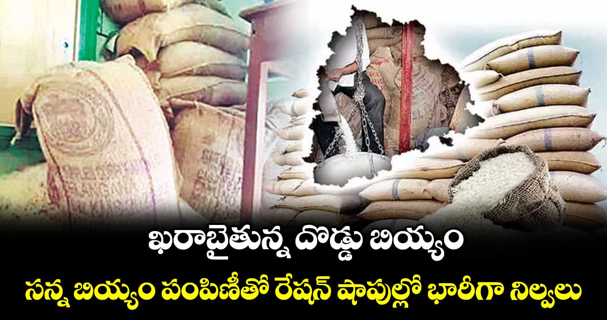 మొత్తం 8,40,345 రేషన్కార్డులుండగా, ఒక్కో వ్యక్తికి తలా ఆరు కిలోల చొప్పున వచ్చిన బియ్యం మూలకు పడి ముక్కిపోతోంది. అప్పటి నుంచి ప్రతినెలా సన్న బియ్యమే ఇస్తుండడంతో దొడ్డు బియ్యాన్ని లబ్ధిదారులకు అదనంగా ఇచ్చేలా చేయడమో లేక ప్రభుత్వం తిరిగి తీసుకునేలా చర్యలు తీసుకోవడమో చేయాలని రేషన్డీలర్లు కోరుతున్నారు.