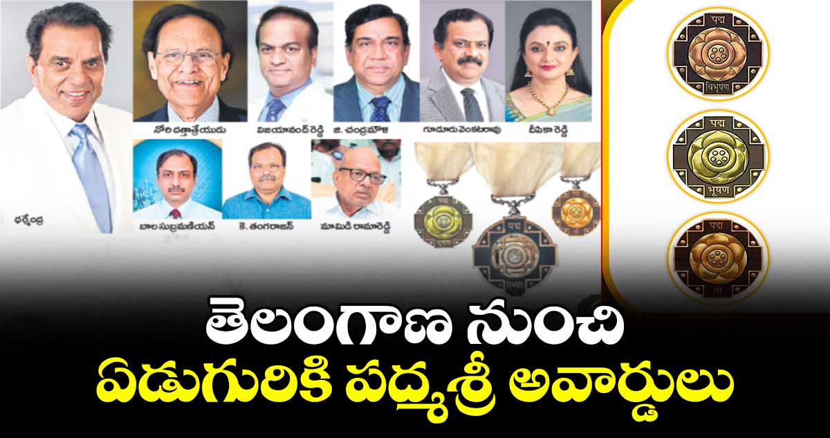 న్యూఢిల్లీ, వెలుగు: 2026కు గానూ కేంద్ర ప్రభుత్వం ప్రకటించిన పద్మ అవార్డుల్లో తెలంగాణ పంట పండింది. 77 వ గణతంత్ర దినోత్సవం పురస్కరించుకొని విడుదల చేసిన జాబితాలో వివిధ రంగాల్లో సేవలందించిన తెలంగాణకు చెందిన ఏడుగురికి పద్మ శ్రీ పురస్కారాలు దక్కాయి. సైన్స్ అండ్ ఇంజినీరింగ్లో జీ చంద్రమౌళి, బాల సుబ్రమణియన్, కుమారస్వామి తంగరాజ్కు పద్మ శ్రీ దక్కింది. అలాగే, వైద్య రంగంలో గూడురు వెంకటరావు, విజయ్ ఆనంద్రెడ్డి, కళా రంగంలో దీపికారెడ్డి, పశుపోషణ/వ్యవసాయంలో రామారెడ్డి మామిడిని పురస్కారం వరించింది.