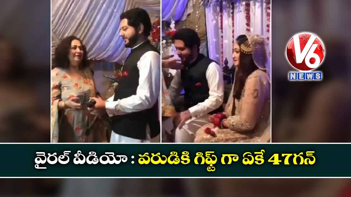 వరుడు, వధువుకి బంగారాన్నో, ఖరీదైన వస్తువుల్ని గిఫ్ట్ గా ఇస్తారు. కానీ ఓ మహిళ మాత్రం వరుడికి ఏకే47గన్ గిఫ్ట్ ఇవ్వడం వీడియో సోషల్ మీడియాలో వైరల్ అవుతుంది. సోషల్ మీడియాలో వైరల్ అవుతున్న 30సెకన్ల వీడియో పాకిస్తాన్ లో జరిగిన పెళ్లి అని నేషనల్ మీడియా పేర్కొంది. పెళ్లిమండపంలో వరుడు, వధువు పక్కపక్కనే కూర్చొని ఉండగా..అంతలో ఓ మహిళ సదరు వరుడికి శుభాకాంక్షలు తెలిపి.. పెళ్లి కానుకగా ఏకే 47 గన్ ఇవ్వడంతో వధువు షాక్ తిన్న వీడియోను అదీల్ హసాన్ అనే నెటిజన్ సోషల్ మీడియోలో షేర్ చేశాడు. ఆ వీడియోపై నెటిజన్లు తమదైన స్టైల్లో కామెంట్లు చేస్తున్నారు.