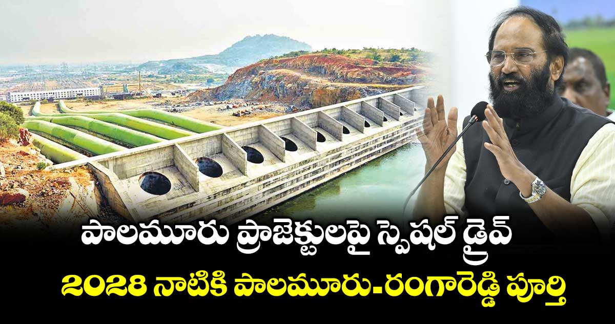 హైదరాబాద్, వెలుగు: ఉమ్మడి పాలమూరు జిల్లాలోని ముఖ్యమైన ప్రాజెక్టులను వేగంగా పూర్తి చేసేందుకు స్పెషల్ డ్రైవ్ చేపడతామని ఇరిగేషన్ శాఖ మంత్రి ఉత్తమ్ కుమార్ రెడ్డి తెలిపారు. రాబోయే రెండున్నరేండ్లలో పాలమూరు – రంగారెడ్డి ప్రాజెక్టును పూర్తి చేస్తామని, 2028 నాటికి అందుబాటులోకి తెస్తామని చెప్పారు.