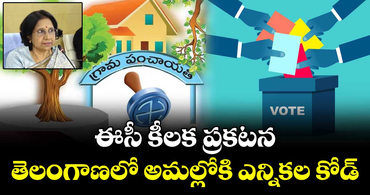 గ్రామాల్లో పంచాయతీ ఎన్నికల నగారా మోగింది. మంగళవారం (నవంబర్ 25) సాయంత్రం పంచాయతీ ఎన్నికల షెడ్యూల్ విడుదల చేసింది రాష్ట్ర ఎన్నికల సంఘం. షెడ్యూల్ విడుదల చేసిన సందర్భంగా గ్రామాల్లో తక్షణమే ఎన్నికల కోడ్ అమలులోకి వస్తుందని ప్రకటించారు రాష్ట్ర ఎన్నికల అధికారి.