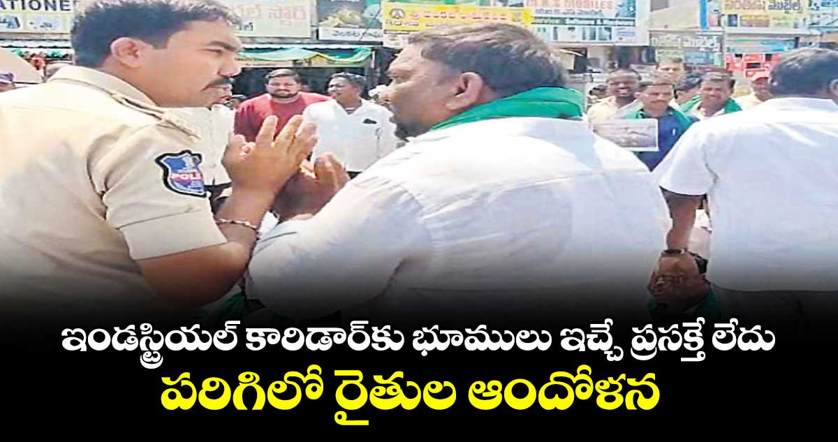 పరిగి బస్టాండ్ వద్ద జాతీయ రహదారిపై బైఠాయించి నిరసన తెలపడంతో ట్రాఫిక్ స్తంభించింది. భూములు ఇచ్చే ప్రసక్తే లేదని రైతులు స్పష్టం చేశారు. ఆందోళన విరమింపజేసే క్రమంలో పోలీసులు, ఆందోళనకారుల మధ్య స్వల్ప వాగ్వాదం జరిగింది. చివరకు రైతులు, నాయకులు కలిసి తహసీల్దార్ వెంకటేశ్వరికి వినతిపత్రం సమర్పించారు.
