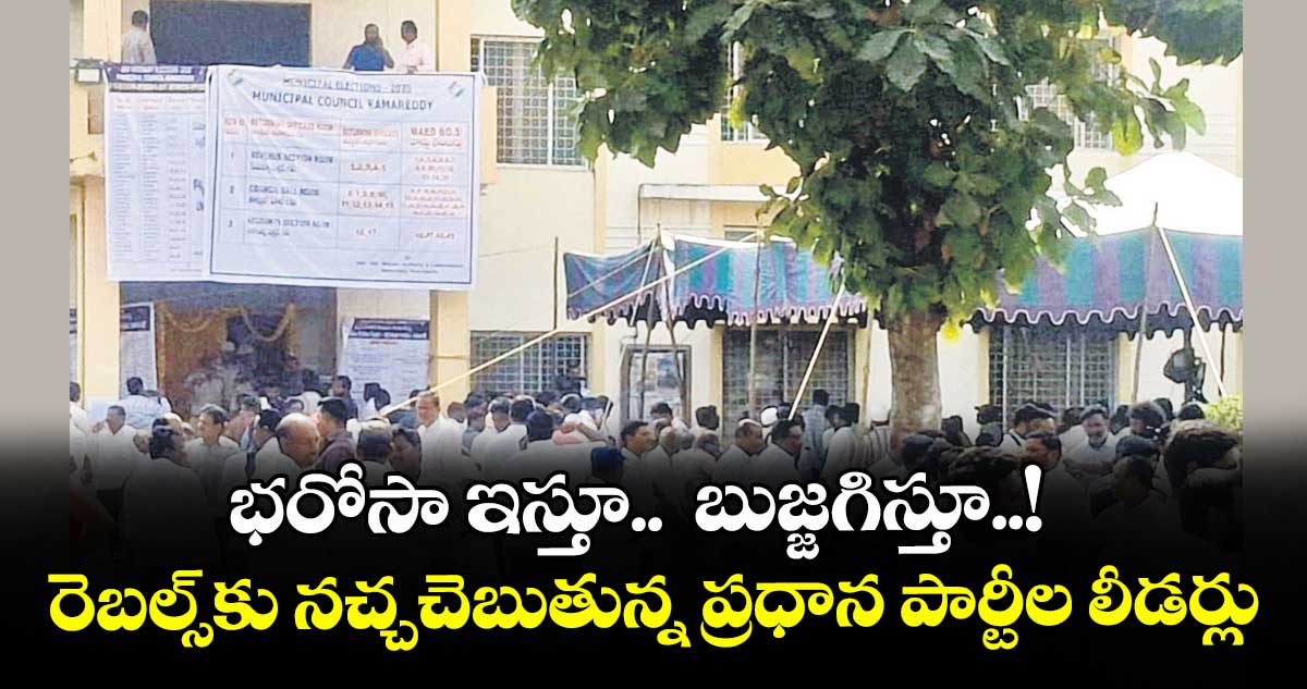 ప్రభుత్వ సలహాదారు షబ్బీర్ అలీతో పాటు ఇతర ముఖ్య నేతలు నేరుగా అభ్యర్థులతో మాట్లాడుతున్నారు. టికెట్ రాని వారికి నామినేటెడ్ పదవులు, పార్టీ పదవులు ఇస్తామని హామీ ఇస్తూ రెబల్స్ బెడదను నివారించే ప్రయత్నాలు చేస్తున్నారు. కొందరు నాయకులు సహకరిస్తుండగా, మరికొందరు మాత్రం బరిలో నిలబడేందుకే పట్టుబడుతున్నట్లు తెలుస్తోంది. బీజేపీలో కూడా కొన్ని వార్డుల్లో ఒకరికిపైగా టికెట్ ఆశించే వారు ఉండటంతో ఎమ్మెల్యే వెంకటరమణారెడ్డి చర్చలు జరుపుతున్నారు. బీఆర్ఎస్లోనూ ఇలాంటి పరిస్థితే ఉండగా, మాజీ ఎమ్మెల్యే గంప గోవర్ధన్ రెబల్స్కు నచ్చజెప్పే ప్రయత్నాలు చేస్తున్నారు.