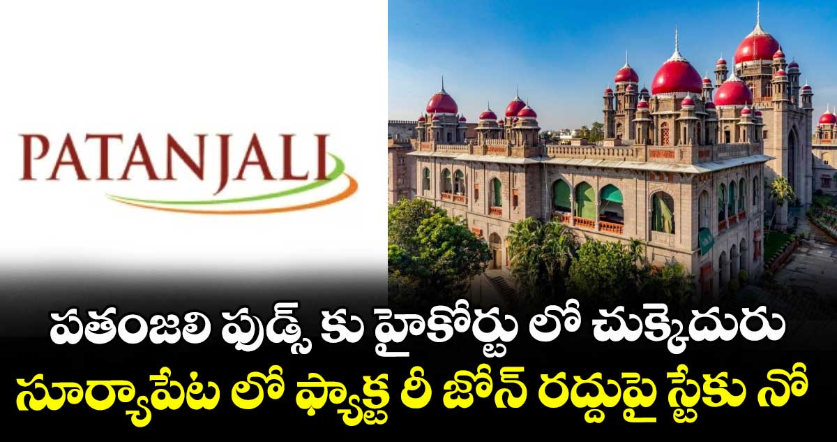 హైదరాబాద్, వెలుగు: సూర్యాపేటలో ఫ్యాక్టరీ జోన్ రద్దుకు సంబంధించి పతంజలి ఫుడ్స్ లిమిటెడ్కు హైకోర్టులో చుక్కెదురైంది. పతంజలి ఫుడ్స్ లిమిటెడ్కు సూర్యాపేటలో కేటాయించిన ఫ్యాక్టరీ జోన్ను రద్దును సమర్థిస్తూ సింగిల్ జడ్జి ఇచ్చిన ఉత్తర్వులపై స్టేకు హైకోర్టు నిరాకరించింది. పామాయిల్ ఉత్పత్తి పెంపులో భాగంగా ఫ్యాక్టరీ జోన్ను రద్దు చేస్తూ ప్రభుత్వం గతేడాది ఉత్తర్వులు జారీ చేసింది. దీన్ని సవాల్ చేస్తూ పతంజలి ఫుడ్స్ హైకోర్టును ఆశ్రయించగా.. ప్రభుత్వ ఉత్తర్వుల్లో జోక్యం చేసుకోవడానికి సింగిల్ జడ్జి నిరాకరించారు.