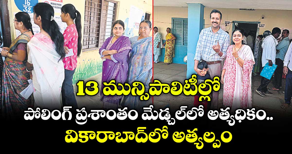 చేవెళ్ల, వెలుగు: రంగారెడ్డి, వికారాబాద్, మేడ్చల్మల్కాజిగిరి జిల్లాల్లోని 13 మున్సిపాల్స్థానాల్లో బుధవారం నిర్వహించిన ఎన్నికలు చెదురు ముదురు ఘటనలు మినహా ప్రశాంతంగా జరిగాయి. రంగారెడ్డి జిల్లాలోని 6 మున్సిపాలిటీల్లోని 126 వార్డుల్లో 1,76,023 మంది ఓటర్లుండగా 1,39,044 మంది ఓటు హక్కు వినియోగించుకున్నారు. ఈ జిల్లాలో 78.99 శాతం పోలింగ్ నమోదు కాగా, పురుషులతో పోలిస్తే మహిళలే ఎక్కువగా ఓట్లేశారు. 87,478 మంది పురుషులు, 88,542 మంది మహిళలు ఉండగా.. 68,725 మంది పురుషులు, 70,318 మంది మహిళలు ఓటేశారు. పురుషుల పోలింగ్శాతం78.56, కాగా.. మహిళలది 79.42 శాతం కావడం విశేషం.