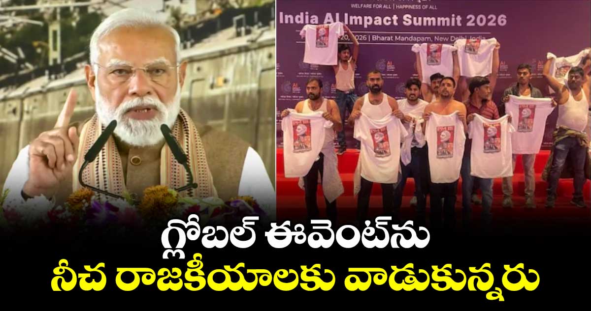 న్యూఢిల్లీ: ఢిల్లీలోని భారత మండపంలో జరిగిన ఇండియా ఏఐ ఇంపాక్ట్ సమ్మిట్లో యూత్ కాంగ్రెస్ నాయకులు అర్థనగ్నంగా నిరసన చేయడంపై ప్రధాని మోడీ ఆగ్రహం వ్యక్తం చేశారు. ఆదివారం (ఫిబ్రవరి 22) మీరట్లో జరిగిన బహిరంగ సభలో ప్రధాని మోడీ మాట్లాడుతూ.. గ్లోబల్ ఈవెంట్ను కాంగ్రెస్ నీచ రాజకీయాలకు వాడుకుందని మండిపడ్డారు. ప్రపంచ వేదికను కాంగ్రెస్ పార్టీ మురికి, నగ్న రాజకీయాల వేదికగా మార్చిందని నిప్పులు చెరిగారు.