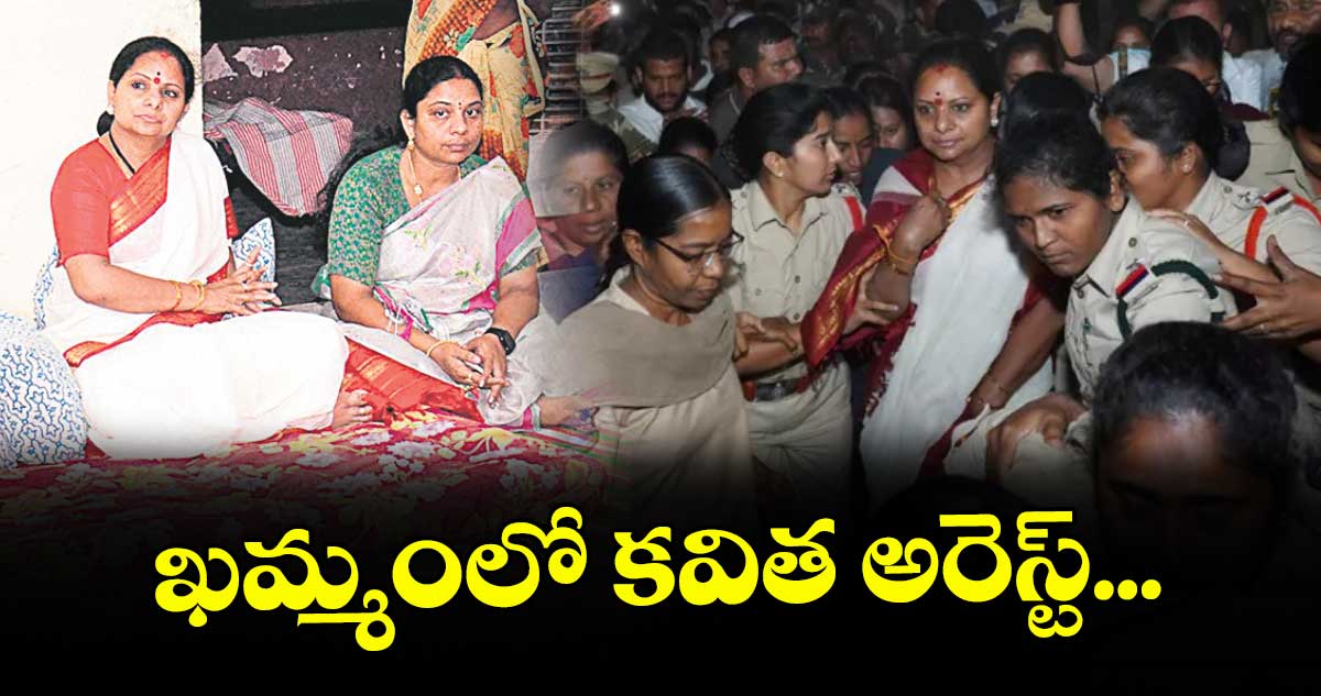 ఖమ్మం/ఖమ్మం టౌన్, వెలుగు: వెలుగుమట్ల భూదాన్ భూమిలో ఇండ్లు కోల్పోయిన బాధితులకు న్యాయం చేయాలని డిమాండ్ చేస్తూ నిరవధిక దీక్షకు దిగిన తెలంగాణ జాగృతి అధ్యక్షురాలు కల్వకుంట్ల కవితను పోలీసులు అరెస్ట్ చేశారు. కవితతో సహా ఆందోళనకారులను అరెస్ట్ చేశారు. కవితను పీఎస్ కు తరలించారు. 43 మంది ఆందోళనకారులను అరెస్ట్ చేశారు. పోలీసులకు,జాగృతి కార్యకర్తలకు మద్య తోపులాట జరిగింది. ఈ తోపులాటలో మహిళా కానిస్టేబుల్ అస్వస్థతకు గురయ్యారు.