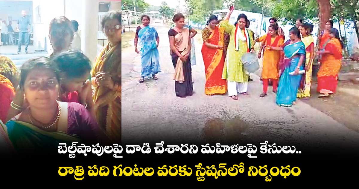 మంచిర్యాల జిల్లా మందమర్రిలో బెల్ట్షాపులపై దాడి చేసి మద్యం బాటిల్స్ పగులగొట్టారంటూ పోలీసులు మహిళలపై కేసులు నమోదు చేశారు. రాత్రి పది గంటల వరకు స్టేషన్లో ఉంచారు.