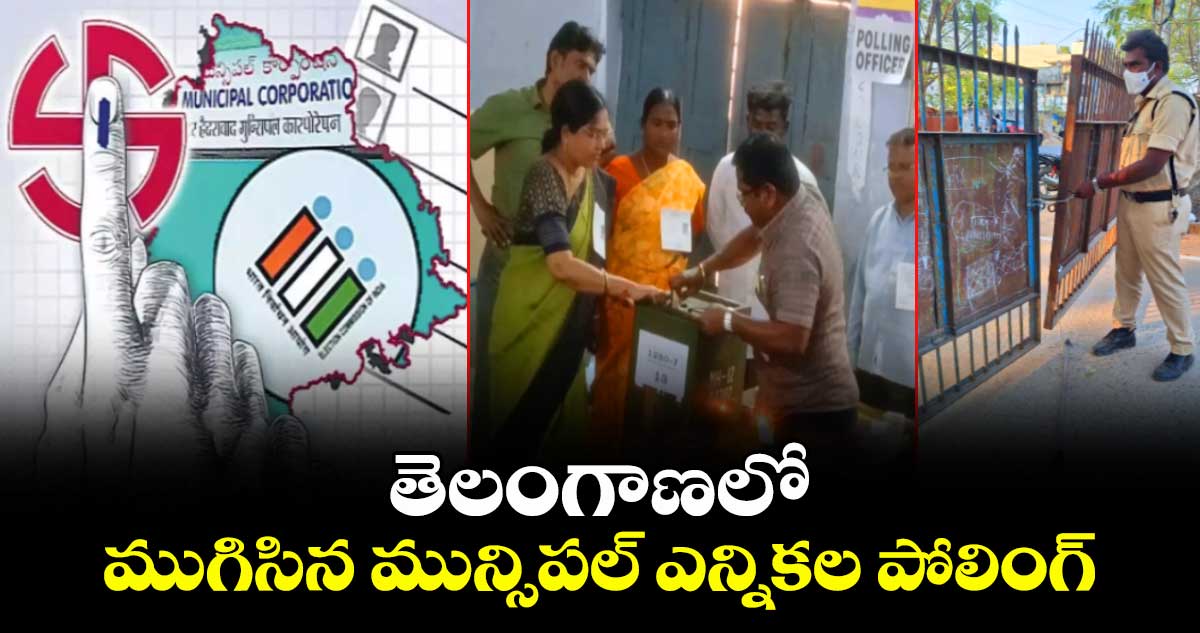 హైదరాబాద్: తెలంగాణలో మున్సిపల్ ఎన్నికల పోలింగ్ ముగిసింది. 116 మున్సిపాలిటీలు, 7 కార్పొరేషన్లలో పోలింగ్ పూర్తయింది. సాయంత్రం 5 గంటల వరకే ఎన్నికల సంఘం ఓటు హక్కు వినియోగించుకునేవారికి అవకాశం ఇచ్చింది. అయితే అప్పటికే క్యూ లైన్లో ఉన్నవారికే ఓటు వేసేందుకు ఎన్నికల సంఘం అధికారులు అనుమతి ఇచ్చారు. ఫిబ్రవరి 13న ఉదయం 8 గంటలకు కౌంటింగ్ మొదలవుతుంది.
