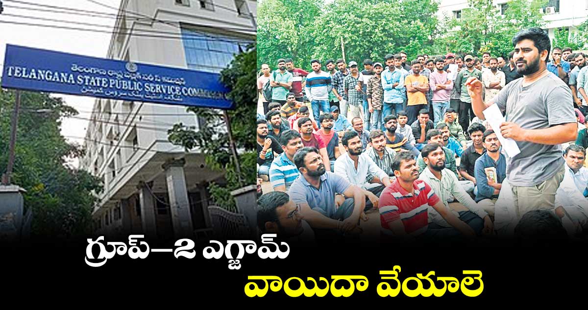 బషీర్ బాగ్, వెలుగు: వచ్చే నెల 29 , 30 తేదీల్లో జరుగనున్న గ్రూప్ 2 పరీక్షను వాయిదా వేయాలని అభ్యర్థులు డిమాండ్ చేశారు. సోమవారం పెద్ద ఎత్తున తరలివచ్చి హైదరాబాద్ నాంపల్లిలోని పబ్లిక్ సర్వీస్ కమిషన్ ను ముట్టడించారు. పోలీసులు వారిని అడ్డుకోవడంతో.. కమిషన్ కార్యాలయం పక్కనే బైఠాయించి ధర్నా నిర్వహించారు. ఈ సందర్భంగా వారు మాట్లాడుతూ.. ఆగస్టు నెల ఒకటో తేదీ నుంచి 23 వరకు గురుకుల బోర్డుకు సంబంధించిన పరీక్షల తేదీలను ప్రకటించారని తెలిపారు. ఒకే నెలలో అటు గ్రూప్ 2, ఇటు గురుకుల పరీక్షల నిర్వహణ వల్ల అభ్యర్థులు ఏదో ఒక పరీక్షకు మాత్రమే ప్రిపేర్ అవ్వాల్సిన గత్యంతరం ఏర్పడ్డదని ఆందోళన వ్యక్తం చేశారు. దానివల్ల తాము నష్టపోతామని పేర్కొన్నారు. అంతేకాక గ్రూప్ 2 పరీక్షలోని మూడో పేపర్ ఎకానమీలో గతంలోని సిలబస్ కు అదనంగా 70 శాతం కలిపారని అన్నారు. పేపర్ లీకేజ్ ఘటనలతో తాము 3 నెలలు చదవలేకపోయామని, ఈ విషయాలను దృష్టిలో పెట్టుకుని గ్రూప్ 2 పరీక్షను మూడు నెలలు వాయిదా వేయాలని వారు కోరారు. మానవతా దృక్పథంతో తమ సమస్యను అర్థం చేసుకుని, తగిన వెసులుబాటు కల్పించాలని విజ్ఞప్తి చేశారు. అనంతరం అభ్యర్థులు టీఎస్పీఎస్సీ చైర్మన్, సెక్రటరీలతో భేటీ అయ్యి, వారి సమస్యను వివరించారు. ఈ అంశంపై తాము త్వరలో సమావేశమై రీషెడ్యూల్ ప్రకటిస్తామని వారు హామీ ఇచ్చినట్లు అభ్యర్థులు తెలిపారు.