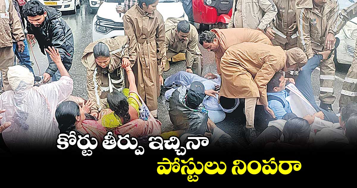 అభ్యర్థులు, పోలీసుల మధ్య తోపులాట..ఉద్రిక్తత