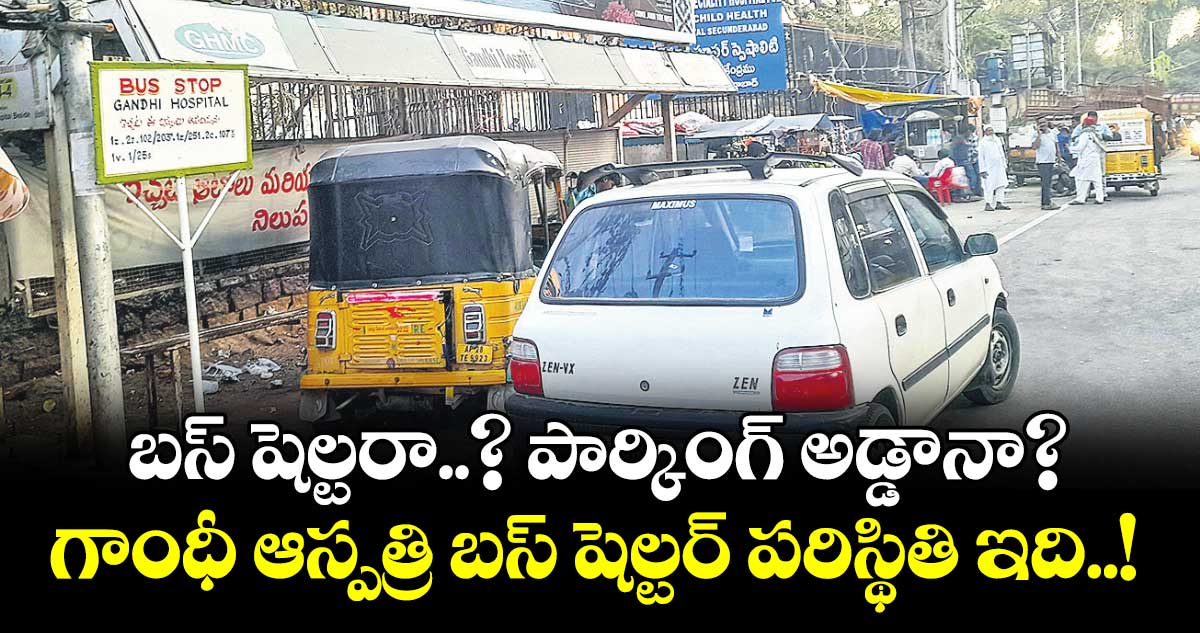 సికింద్రాబాద్ గాంధీ హాస్పిటల్ ఎంసీహెచ్ విభాగ భవనం సమీపంలో ఉన్న బస్ షెల్టర్ ప్రైవేట్ వాహనాల పార్కింగ్కు అడ్డాగా మారింది. వందలాది మంది గర్భిణులు, బాలింతలు, వారి సహాయకులతో ఈ బస్ షెల్టర్ నిత్యం బిజీగా ఉంటుంది. అయితే ఇక్కడి ప్రైవేట్ ఆటోలు, కార్లు, ఇతర వాహనాలను నిలుపుతుండడంతో వారికి ఇబ్బందిగా మారుతోంది. ప్రయాణికులు షెల్టర్లోకి వెళ్లడానికి వీలు లేకుండా, రోడ్డుపైనే నిలబడి బస్సుల కోసం ఎదురుచూడాల్సి వస్తోంది. ఆర్టీసీ, ట్రాఫిక్ పోలీస్ అధికారులు చర్యలు తీసుకోవాలని ప్రయాణికులు కోరుతున్నారు.