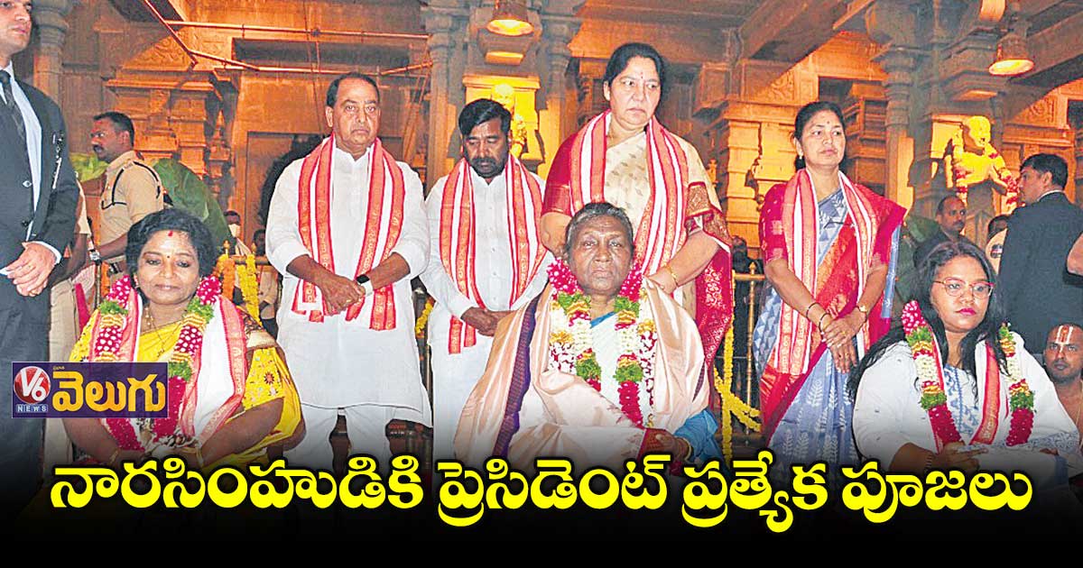 యాదగిరిగుట్ట లక్ష్మీ నరసింహస్వామిని ప్రెసిడెంట్ ద్రౌపది ముర్ము శుక్రవారం దర్శించుకున్నారు. గర్భగుడిలో స్వయంభూ నారసింహుడికి ప్రత్యేక పూజలు చేశారు. ఆలయ ముఖమంటపంలో ముర్ము, తమిళిసైకి అర్చకులు చతుర్వేద పారాయణ ఆశీర్వచనం చేశారు. అనంతరం హైదరాబాద్ చేరుకున్న ముర్ము.. మూడు రోజుల పర్యటన ముగించుకుని ఢిల్లీ బయల్దేరారు.