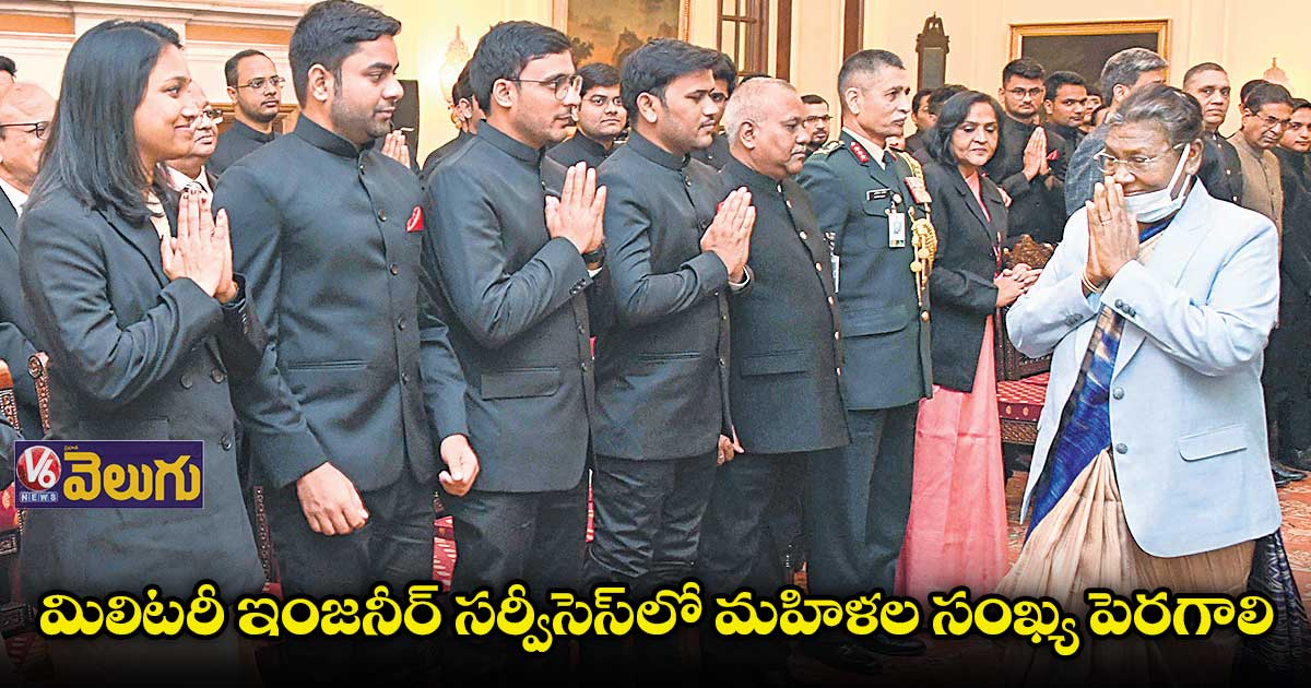 ఢిల్లీ : మిలిటరీ ఇంజనీర్ సర్వీసెస్ (ఎంఈఎస్) లో మహిళల సంఖ్య ఇంకా పెరగాలని ప్రెసిడెంట్ ద్రౌపది ముర్ము అన్నారు. ఇండియన్ డిఫెన్స్ సర్వీస్ ఆఫ్ ఇంజనీర్స్, ఎంఈఎస్ ఆర్కిటెక్ట్, సర్వేయర్ క్యాడర్ కు చెందిన చెందిన ట్రైనీ ఆఫీసర్లు గురువారం రాష్ట్రపతి భవన్ లో ముర్మును కలిశారు. ఈ సందర్భంగా ఆమె మాట్లాడారు. యంగ్ ఆఫీసర్లుగా పర్యావరణంపై శ్రద్ధ వహించాలని సూచించారు. మెరుగైన సేవలు అందించేందుకు ఇన్ఫర్మేషన్, కమ్యూనికేషన్ టెక్నాలజీని ఉపయోగించుకోవాలన్నారు. ‘‘దేశం కోసం మన జవాన్లు తమ ప్రాణాలు అర్పించేందుకు ఎప్పుడూ సిద్ధంగా ఉంటారు. అలాంటి సైనికులకు సేవలు అందిస్తున్నందుకు మీరు (ఎంఈఎస్ ట్రైనీ ఆఫీసర్లు) గౌరవంగా భావించాలి.