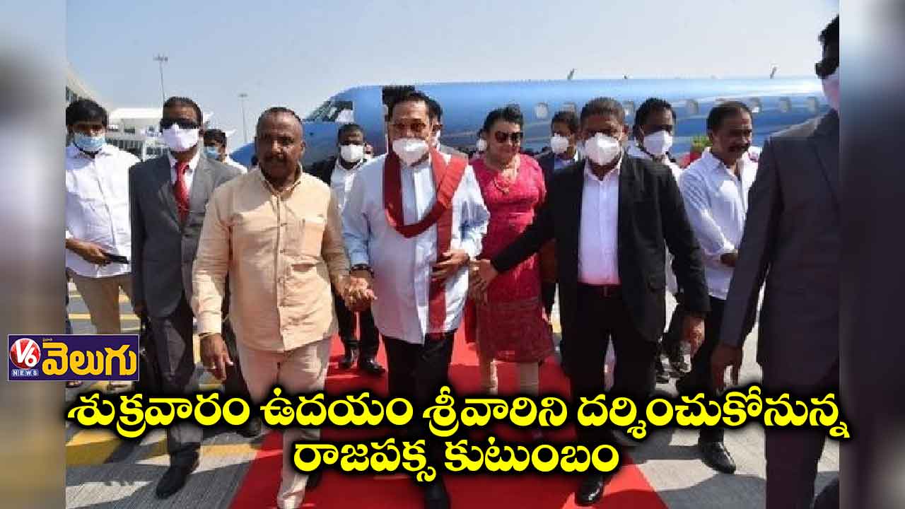 శ్రీలంక ప్రధాని మహీంద రాజపక్స కుటుంబ సమేతంగా తిరుమల శ్రీవారి దర్శనానికి విచ్చేశారు. రాజపక్స కుటుంబం రెండు రోజుల పాటు తిరుమలలో గడపనుంది. ఇవాళ(గురువారం) మధ్యాహ్నం కొలంబో నుండి ప్రత్యేక విమానంలో కుటుంబ సభ్యులతో బయలు దేరిన ఆయన.. ఉదయం 11.37 గంటలకు రేణిగుంటకు చేరుకున్నారు.ఆయనకు భారతీయ సంస్కృతి, సంప్రదాయలతో ఘన స్వాగతం లభించింది. విమానాశ్రయంలో ఏపీ డిప్యూటీ సీఎం నారాయణస్వామి, చిత్తూరు జిల్లా కలెక్టర్ ఎం.హరినారాయణన్ హార్దిక స్వాగతం పలికారు. ఆ తర్వాత శ్రీలంక ప్రధాని రోడ్డు మార్గాన తిరుమల బయలు దేరి వెళ్ళారు. ఈ రాత్రికి తిరుమలలో బస చేయనున్న రాజపక్స కుటుంబం.. రేపు(శుక్రవారం) ఉదయం శ్రీవారిని దర్శించుకోనుంది. శ్రీలంక ప్రధాని రాకతో టీటీడీ విస్తృతమైన ఏర్పాట్లు చేసింది. అన్నిరకాల భద్రతా ఏర్పాట్లను చేపట్టింది. చేసింది.