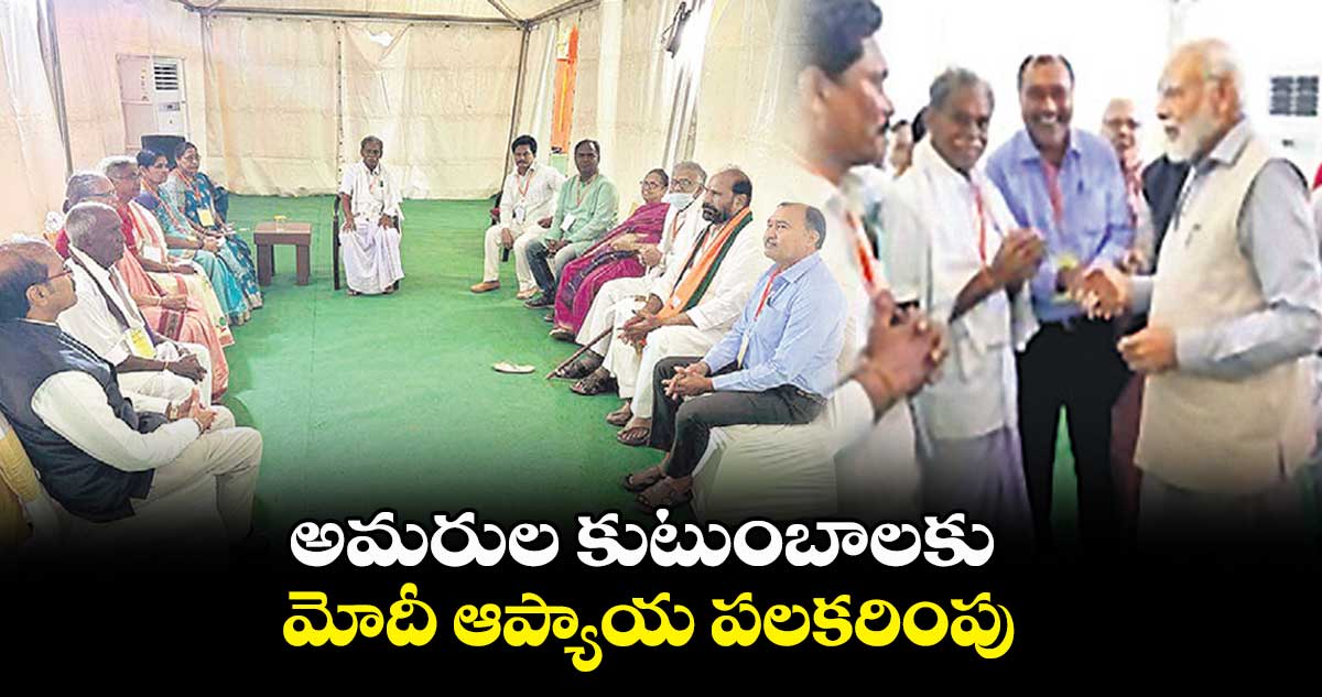వరంగల్, హనుమకొండ, వెలుగు: పార్టీ సిద్ధాంతాల కోసం పనిచేసి మావోయిస్టుల చేతిలో ప్రాణాలు కోల్పోయిన ఆర్ఎస్ఎస్, బీజేపీతో పాటు ఏబీవీపీ నేతల కుటుంబ సభ్యులను శనివారం ప్రధాని మోదీ ఆప్యాయంగా పలకరించారు. హనుమకొండ ఆర్ట్స్ అండ్ సైన్స్ కాలేజీ గ్రౌండ్లో విజయ్ సంకల్పసభ వేదిక వద్ద 12 మంది ఫ్యామిలీ మెంబర్స్తో ప్రధాని ప్రత్యేకంగా మాట్లాడారు. యోగక్షేమాలు అడిగి తెలుసుకున్నారు.