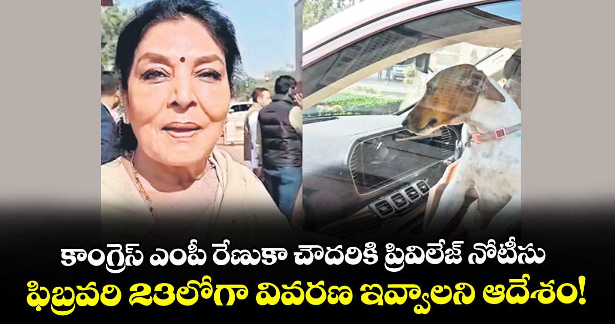 న్యూఢిల్లీ: రాజ్యసభ సభ్యురాలు, కాంగ్రెస్ సీనియర్ నాయకురాలు రేణుకా చౌదరికి ప్రివిలేజ్ కమిటీ నోటీసులు జారీ చేసింది. పార్లమెంటు కాంప్లెక్స్ లోకి వీధి కుక్కను తీసుకురావడంతో పాటు, ఎంపీలపై అనుచిత వ్యాఖ్యలు చేసినందుకుగాను ఆమెపై సభా హక్కుల ఉల్లంఘన చర్యలకు కమిటీ సిద్ధమైంది. ఎంపీ రేణుకా చౌదరిపై బీజేపీ ఎంపీలు ఇచ్చిన ఫిర్యాదును రాజ్యసభ ప్రివిలేజ్ కమిటీ స్వీకరించింది. ఫిబ్రవరి 23లోగా దీనిపై వివరణ ఇవ్వాలని ఆమెను ఆదేశించినట్టు తెలుస్తోంది. పార్లమెంటు శీతాకాల సమావేశాల సందర్భంగా డిసెంబర్ 1న ఎంపీ రేణుకా చౌదరి ఒక వీధి కుక్కను తన కారులో పార్లమెంటు కాంప్లెక్స్ లోకి తీసుకువచ్చారు.