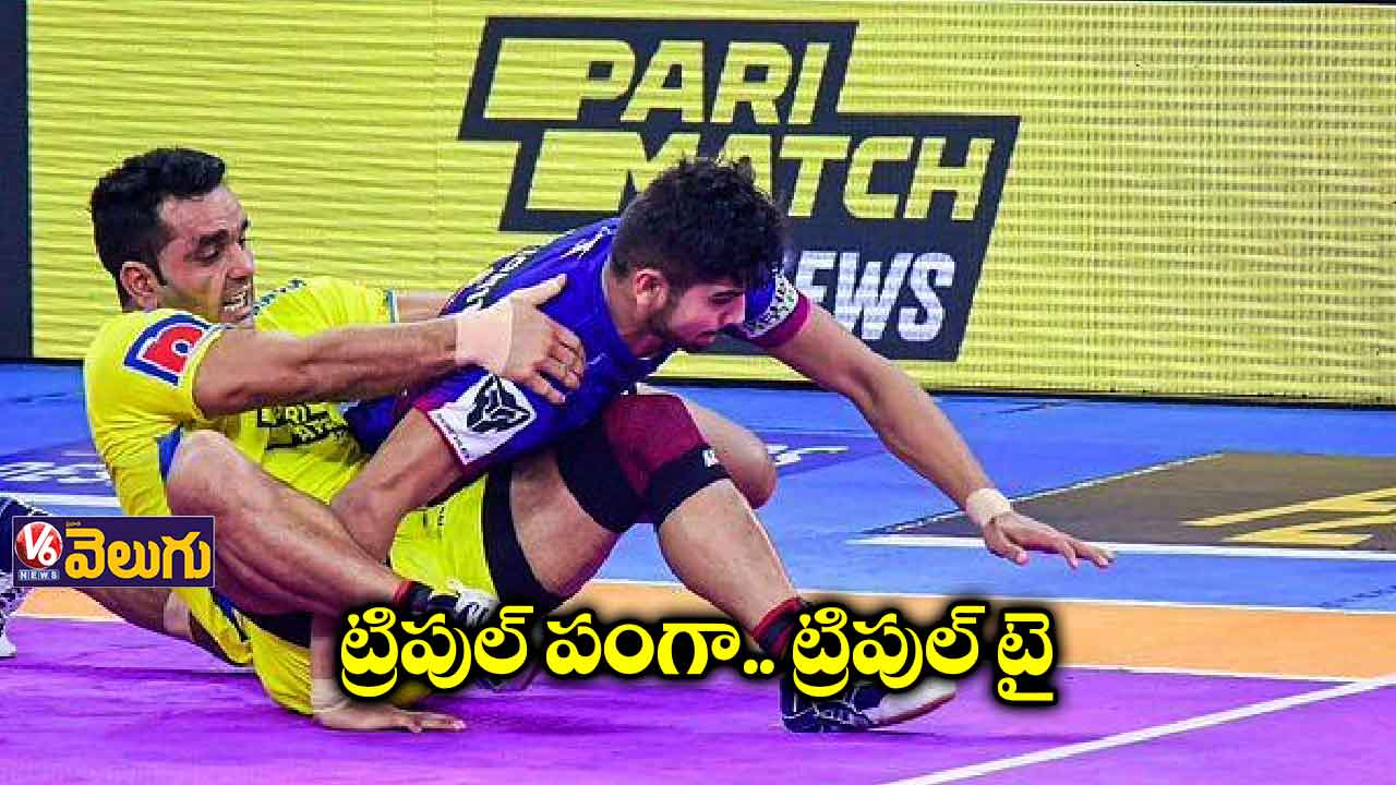 బెంగళూరు: ప్రొ కబడ్డీ లీగ్ ఎనిమిదో సీజన్లో అనూహ్య పరిణామం. లీగ్లో భాగంగా శనివారం జరిగిన మూడు మ్యాచ్లూ టై అయ్యాయి. తొలుత యు ముంబా, యూపీ యోధా మధ్య ఫస్ట్ ఫైట్ 28–28తో రిజల్ట్ రాలేదు. ఆ తర్వాత బెంగళూరు బుల్స్తో మ్యాచ్ను తెలుగు టైటాన్స్ 34–34తో డ్రాగా ముగించింది. చివరిదైన దబాంగ్ ఢిల్లీ కేసీ, తమిళ్ తలైవాస్ మధ్య పోరు కూడా 30–30తో టై అయింది. దాంతో, ట్రిపుల్ పంగా.. కాస్త ట్రిపుల్ టైగా మారింది. కాగా, ఈ లీగ్లో తెలుగు టైటాన్స్ గెలుపు రుచి చూడలేకపోతోంది. వరుసగా నాలుగో మ్యాచ్లోనూ బోణీ కొట్టలేకపోయింది. టైతో సీజన్ను స్టార్ట్ చేసిన తెలుగు టీమ్... బుల్స్పై గెలవాల్సిన పోరును మళ్లీ టై చేసుకుంది. ఇంకో 30 సెకండ్లలో ఆట ముగుస్తుందనగా 34–31తో మూడు పాయింట్ల లీడ్లో ఉన్న టైటాన్స్ ఈజీగా గెలిచేలా కనిపించింది. కానీ, ఈ టైమ్లో డూ ఆర్ డై రైడ్కు వచ్చిన అంకిత్ బెనివాల్ను బుల్స్ ట్యాకిల్ చేసింది. ఆపై, లాస్ట్ రైడ్లో కెప్టెన్ రోహిత్ కుమార్ను సోలో ట్యాకిల్ చేసిన బెంగళూరు బుల్స్ కెప్టెన్ పవన్ షెరావత్ తమ టీమ్కు ఓటమి తప్పించాడు. బెంగళూరు టీమ్లో చంద్రన్ రంజిత్ (9 పాయింట్లు), పవన్ (8) సత్తా చాటారు. టైటాన్స్ టీమ్లో అంకిత్ బెనివాల్ (10) సూపర్ టెన్ సాధించినా.. ఫలితం లేకపోయింది.