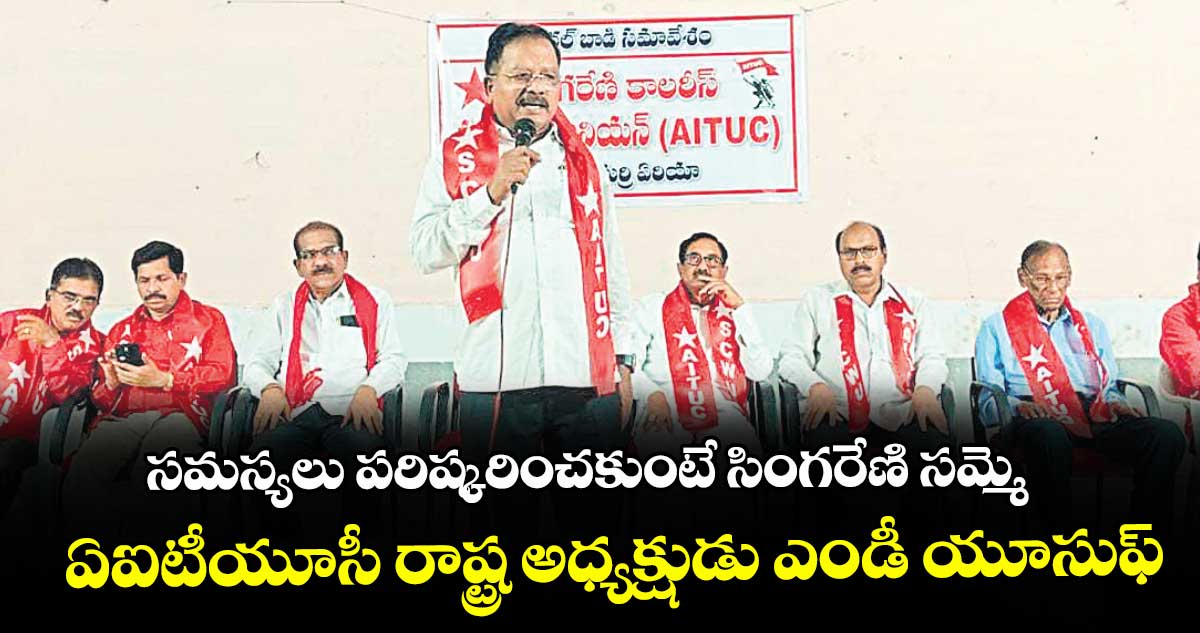 కోల్బెల్ట్, వెలుగు: కార్మికుల పెండింగ్ సమస్యలను వెంటనే పరిష్కరించకపోతే సింగరేణిలో సమ్మెకు దిగుతామని ఏఐటీయూసీ రాష్ట్ర అధ్యక్షుడు ఎం.డి.యూసుఫ్ హెచ్చరించారు. ఆదివారం రాత్రి మంచిర్యాల జిల్లా మందమర్రిలోని సీఈఆర్ క్లబ్లో నిర్వహించిన ఏఐటీయూసీ జనరల్ బాడీ సమావేశానికి ఆయన ముఖ్య అతిథిగా హాజరయ్యారు.