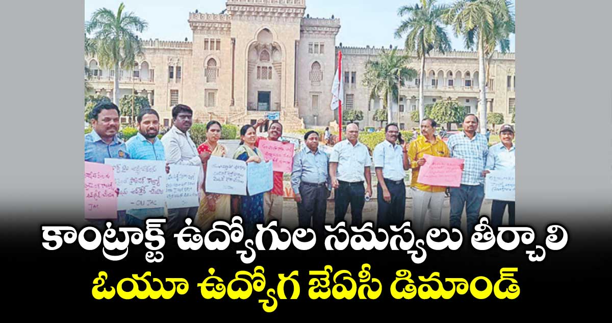 ఓయూ, వెలుగు: యూనివర్సిటీల్లో పనిచేస్తున్న కాంట్రాక్ట్, పార్ట్టైమ్ టీచర్లు, నాన్- టీచింగ్ ఉద్యోగుల సమస్యలను ప్రభుత్వం తక్షణమే పరిష్కరించాలని ఓయూ ఉద్యోగ జేఏసీ డిమాండ్ చేసింది. బుధవారం ఓయూ ఆర్ట్స్ కాలేజీ ముందు చేపట్టిన నిరసనలో జేఏసీ నాయకులు డాక్టర్ పరుశురాం, డాక్టర్ విజయేందర్ రెడ్డి మాట్లాడారు.