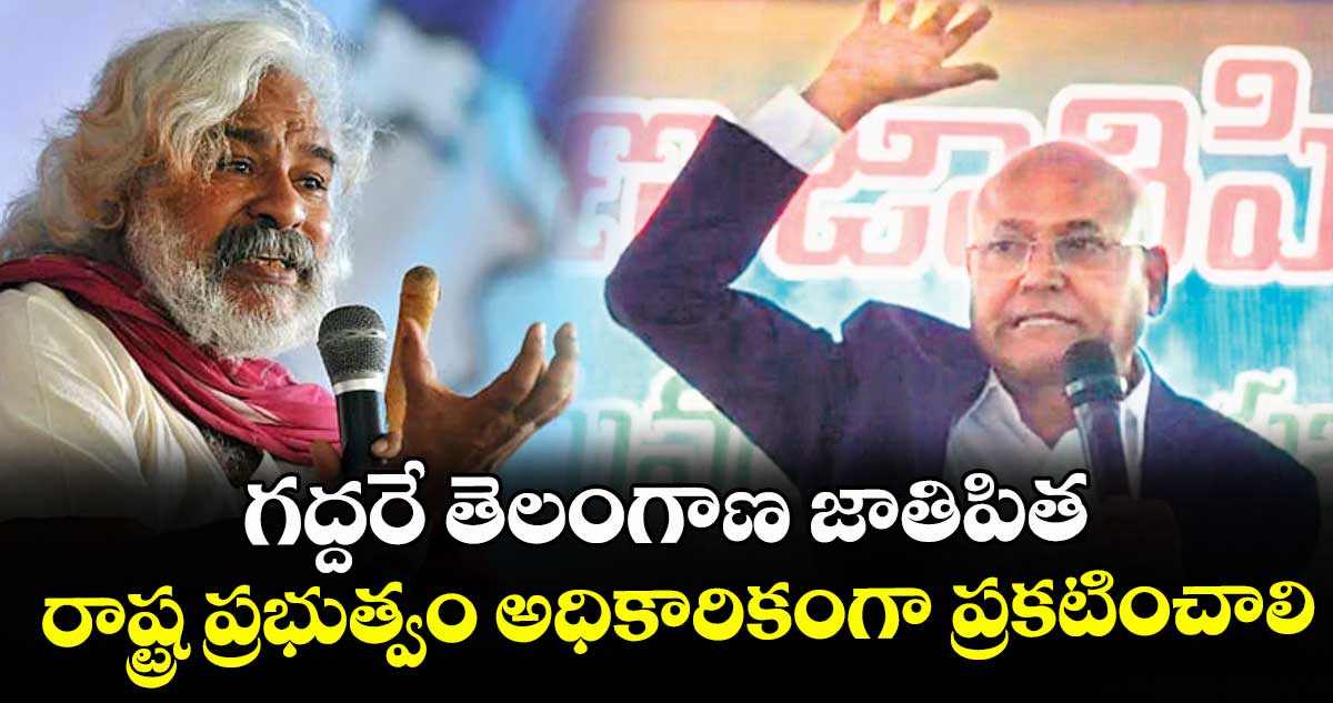 తెలంగాణ జాతిపితగా కేసీఆర్ ప్రకటించుకోవడంపై ప్రభుత్వం స్పందించాలన్నారు. కేసీఆర్ను జాతిపితగా పేర్కొంటూ ఫిబ్రవరి 17న హోర్డింగులు, కటౌట్లు, బ్యానర్లు వేయించుకున్నా ప్రభుత్వం నుంచి ఎలాంటి స్పందన రాలేదన్నారు. ఆగస్టు 6న గద్దర్ వర్ధంతి లోపు..పెద్ద బహిరంగ సభ ఏర్పాటు చేసి గద్దర్ను తెలంగాణ జాతిపితగా ప్రకటించాలని డిమాండ్ చేశారు. లేకపోతే తెలంగాణ ప్రజానీకం క్షమించదన్నారు. కేసీఆర్ పవర్లోకి రాగానే కొడుకును, బిడ్డను దింపి పదేళ్లలో వేల ఎకరాల భూములు, లెక్కలేనన్ని ఫామ్ హౌజ్లు సంపాదించారని ఐలయ్య ఆరోపించారు.