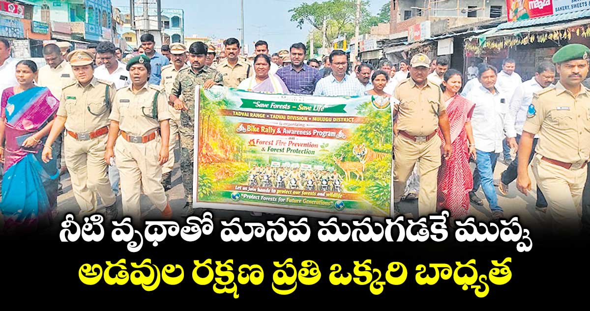 ములుగు/గోవిందరావుపేట/ఆత్మకూరు/శాయంపేట, వెలుగు : నీటి వృథాతో మానవ మనుగడే ముప్పు వాటిల్లే ప్రమాదం ఉందని మంత్రి సీతక్క హెచ్చరించారు. గ్రామాల అభివృద్ధిలో ప్రజలు స్వచ్ఛందంగా పాల్గొనాలని సూచించారు. ములుగు జిల్లా గోవిందరావు పేట మండలం పస్రా గ్రామంలో ఆదివారం నిర్వహించిన జల మహోత్సవ ర్యాలీ, అడవుల సంరక్షణ – ఆవశ్యకత అవగాహన ర్యాలీలో మంత్రి పాల్గొన్నారు.