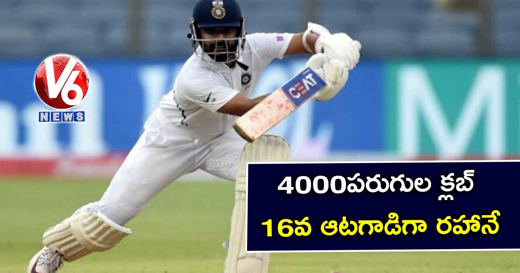 ఇండోర్లోని హోల్కర్ స్టేడియం వేదికగా భారత్ బంగ్లాదేశ్ల మధ్య టెస్ట్ మ్యాచ్ జరుగుతున్న విషయం తెలిసిందే. మొదటిరోజు బ్యాటింగ్ చేసిన బంగ్లాను భారత బౌలర్లు 150 పరుగులకే ఆల్ అవుట్ చేశారు. తర్వాత బ్యాటింగ్ ప్రారంభించిన భారత్ మొదటి రోజు ఆట ముగిసేలోపే రోహిత్ వికెట్ను చేజార్చుకుంది. రెండో రోజు టీంఇండియా ప్లేయర్లు పుజారా, మయాంక్ అగర్వాల్ 86/1తో ఆట ప్రారంభించారు. కాసేపట్లోనే పుజారా అవుటవడంతో.. కోహ్లీ క్రీజులోకి వచ్చాడు. కోహ్లీ కూడా ఎక్కువసేపు క్రీజులో నిలబడలేకపోయాడు. ఆ తర్వాత రహానే బ్యాటింగ్కి దిగాడు. వికెట్ల మధ్య ఒక్కో రన్ రాబడుతూ రహానే 25 పరుగులు పూర్తి చేసి టెస్ట్ కెరీర్లో 4000 పరుగుల క్లబ్లో చేరాడు. 4000 పరుగుల క్లబ్లో చేరిన 16వ ఆటగాడిగా రహానే నిలిచాడు. అయితే ఈ క్లబ్లో చేరడానికి వెంగ్ సర్కార్ 114, ధోని 116, కపిల్ దేవ్ 138 ఇన్నింగ్స్ తీసుకున్నారు. రహానే మాత్రం 104 ఇన్నింగ్స్ల్లోనే ఈ ఘనత సాధించాడు. అంతకుముందు 101 ఇన్నింగ్స్ల్లో ఈ ఘనత సాధించిన వారిలో గంగూలీ, లక్ష్మణ్ ఉన్నారు.