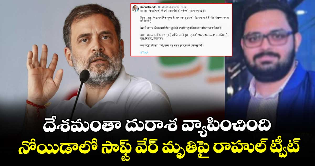 - నోయిడాలో సాఫ్ట్ వేర్ ఇంజనీర్ మృతిపై కాంగ్రెస్ అగ్రనేత ట్వీట్