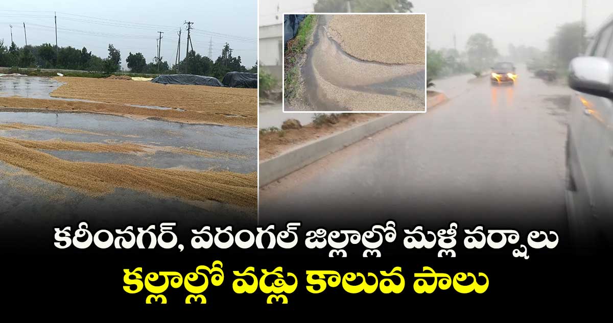 మొంథా తుఫాన్ మిగిల్చిన నష్టాల నుంచి రైతులు కోలుకోకముందే మళ్లీ వర్షాలు కురవడం కలవరపెడుతోంది. మంగళవారం (నవంబర్ 04) తెల్లవారుజాము నుంచీ తెలంగాణలో వర్షాలు కురుస్తుండటం ఆందోళనకు గురిచేస్తుంది. కరీంనగర్, వరంగల్, జనగాం మొదలైన ప్రాంతాలలో కురుస్తున్న వర్షాల కారణంగా కల్లాల్లో ధాన్యం తడిసి తీవ్ర నష్టం వాటిల్లింది.