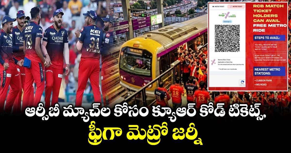 బెంగళూరు నగరంలోని ట్రాఫిక్ కష్టాలను తగ్గించేందుకు ఆర్సీబీ యాజమాన్యం క్రికెట్ అభిమానులకు శుభవార్త చెప్పింది. మ్యాచ్ టికెట్ ఉన్నవారు స్టేడియానికి వచ్చేందుకు, తిరిగి వెళ్లడానికి ఉచితంగా మెట్రోలో ప్రయాణించవచ్చు అని వెల్లడించింది. మ్యాచ్ జరిగే రోజున కబ్బన్ పార్క్ లేదా ఎంజీ రోడ్ మెట్రో స్టేషన్ల దగ్గర మీ టికెట్ను స్కాన్ చేసి జర్నీ చేయొచ్చని పేర్కొనింది. దీని వలన నగరంలోని ట్రాఫిక్ నుంచి తప్పించుకున్న వాళ్లు అవుతారని వెల్లడించింది.