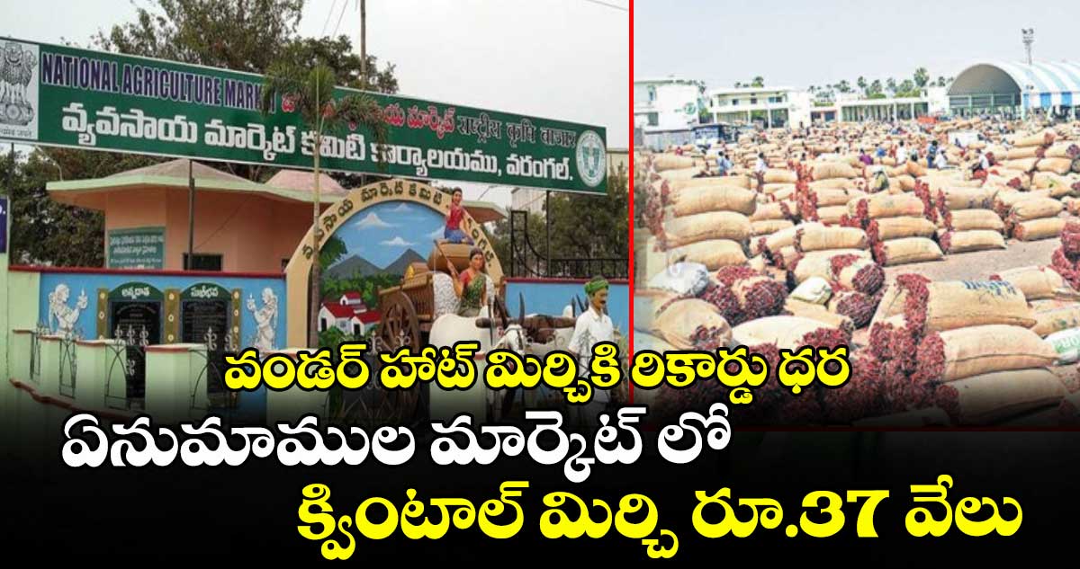 జయశంకర్ భూపాలపల్లి జిల్లా పలిమెల మండలం ఐలపల్లి గ్రామానికి చెందిన వినోద్ మూడు క్వింటాళ్ల వండర్ హాట్ రకం మిర్చిని బుధవారం వరంగల్ ఏనుమాముల మార్కెట్కు తీసుకొచ్చారు. క్వాలిటీ బాగుండడంతో క్వింటాల్ మిర్చి రికార్టు స్థాయిలో రూ. 37,100కు అమ్ముడైంది.